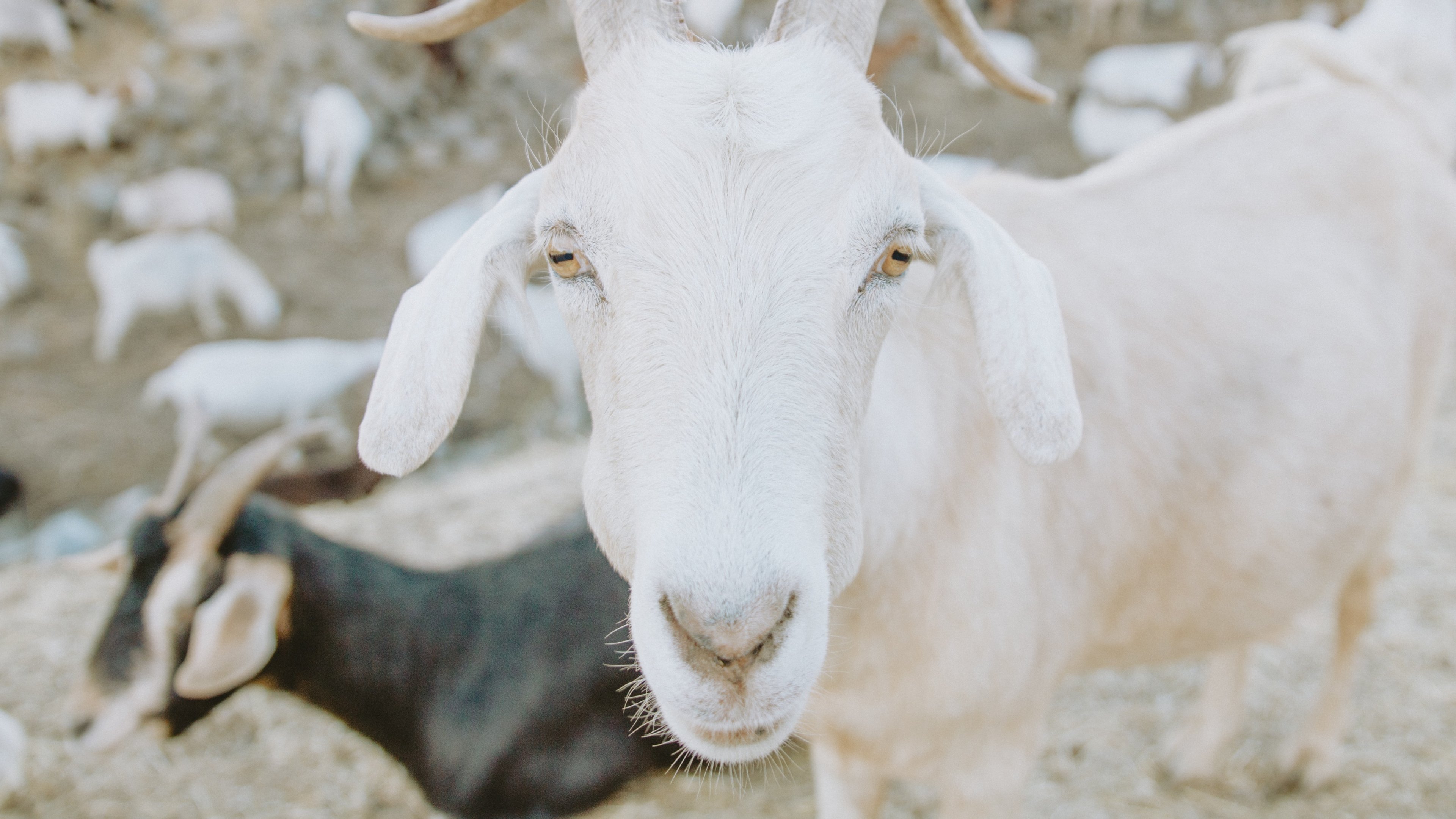 Wallpaper: goat, horn, yellow eyes - 3840x2160