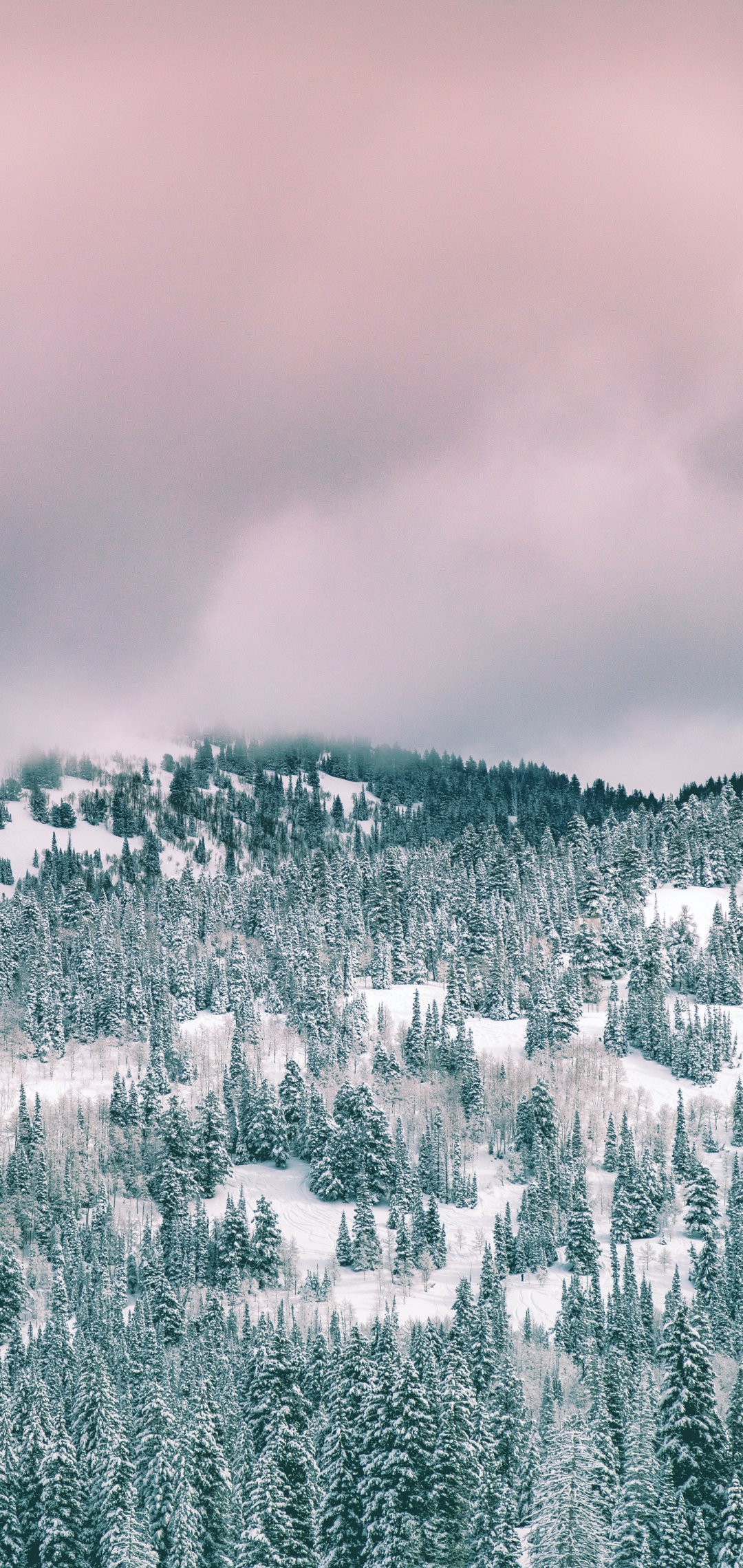 Wallpaper: clouds, winter forest - 1080x2280