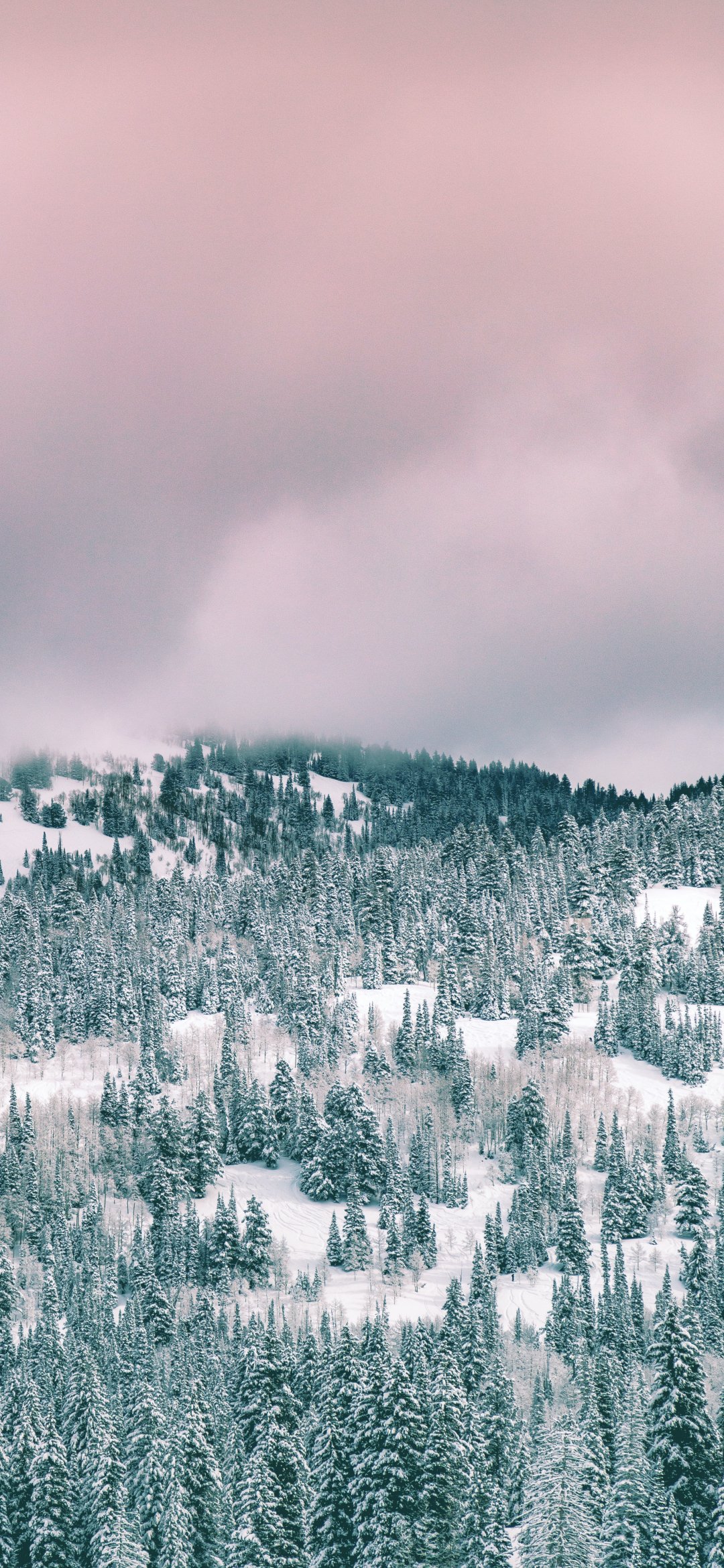 Wallpaper: clouds, winter forest - 1080x2340