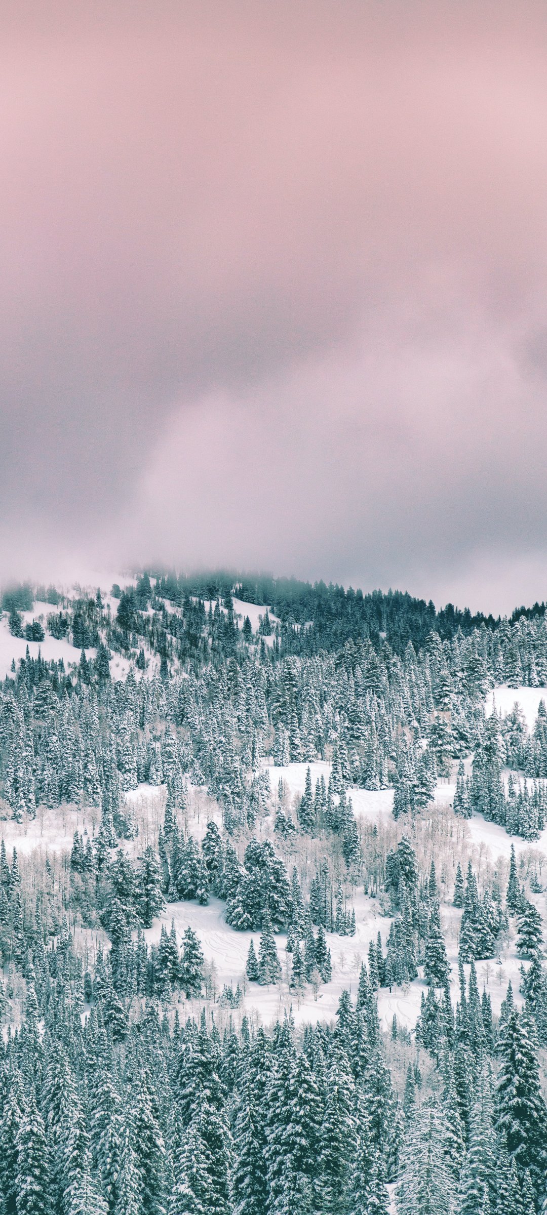 Wallpaper: clouds, winter forest - 1080x2400