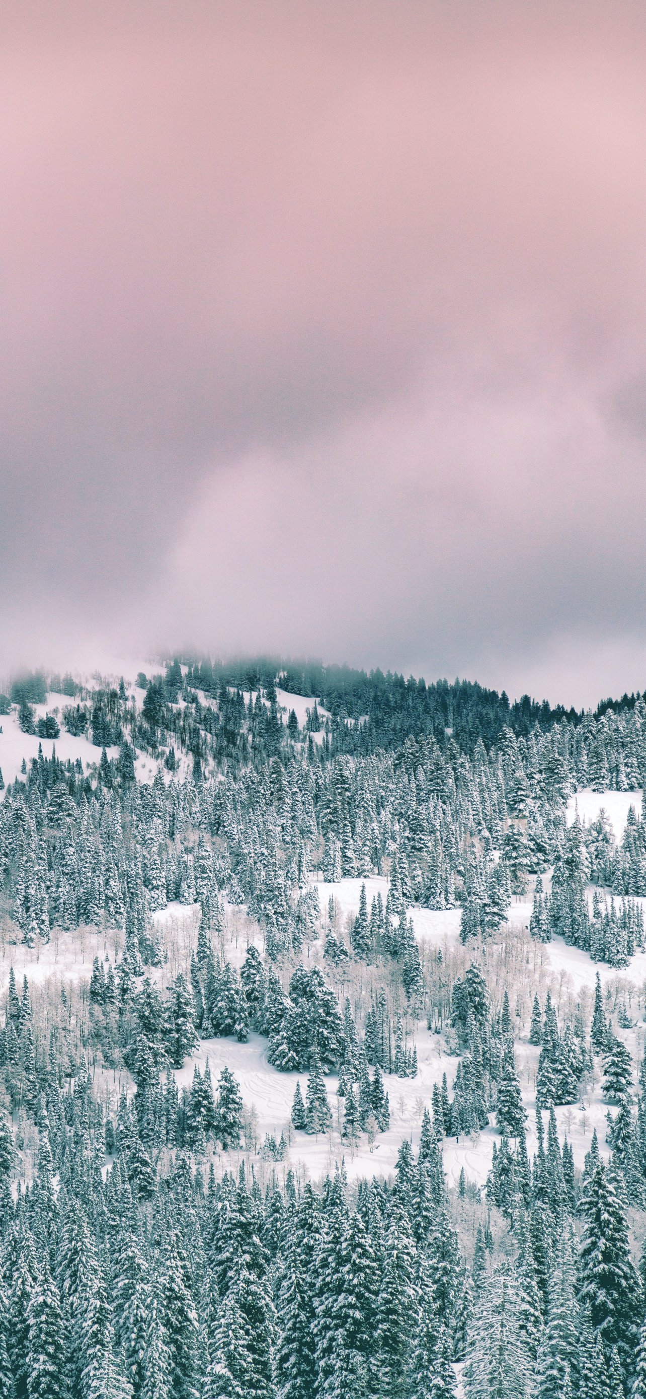 Wallpaper: clouds, winter forest - 1284x2778