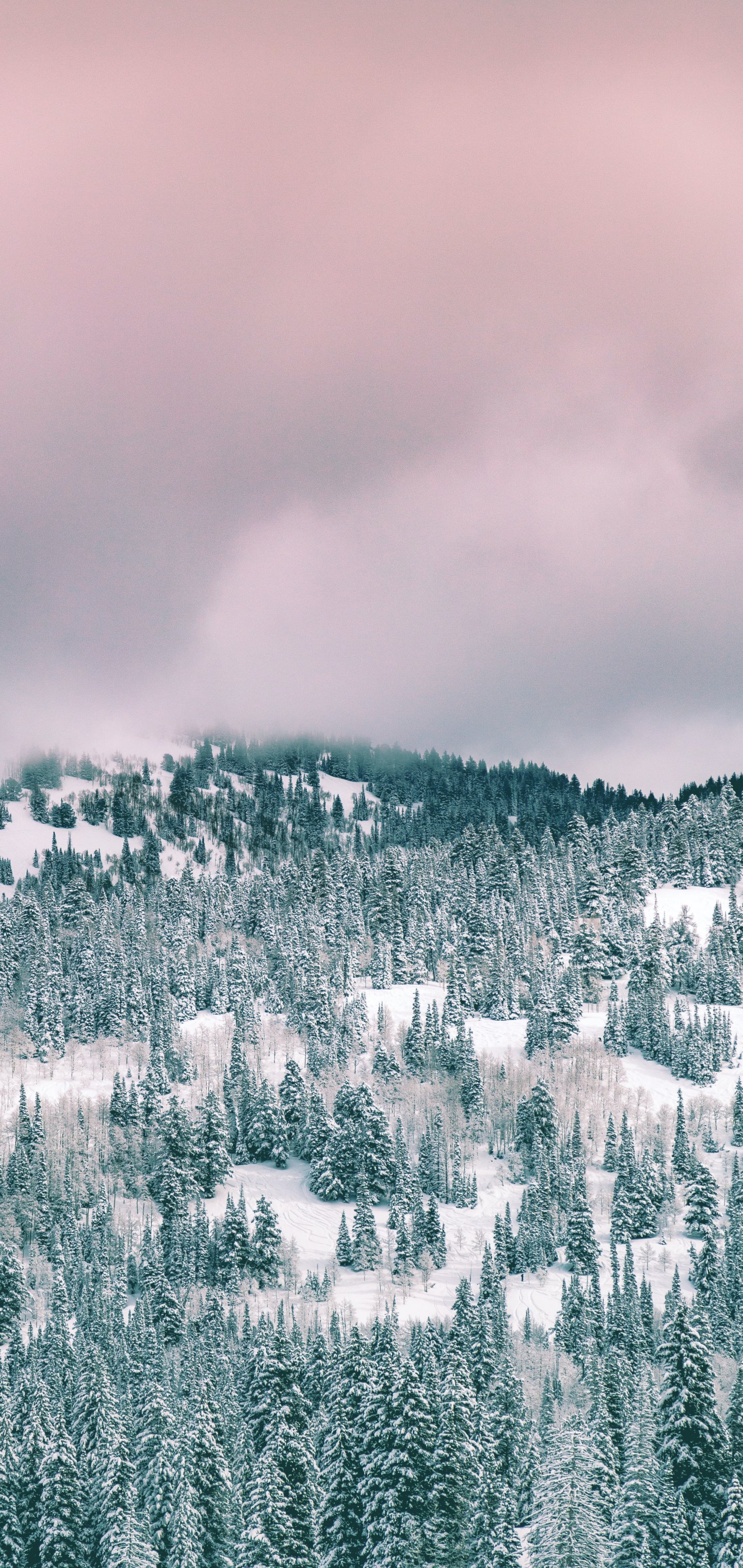Wallpaper: clouds, winter forest - 1440x3040
