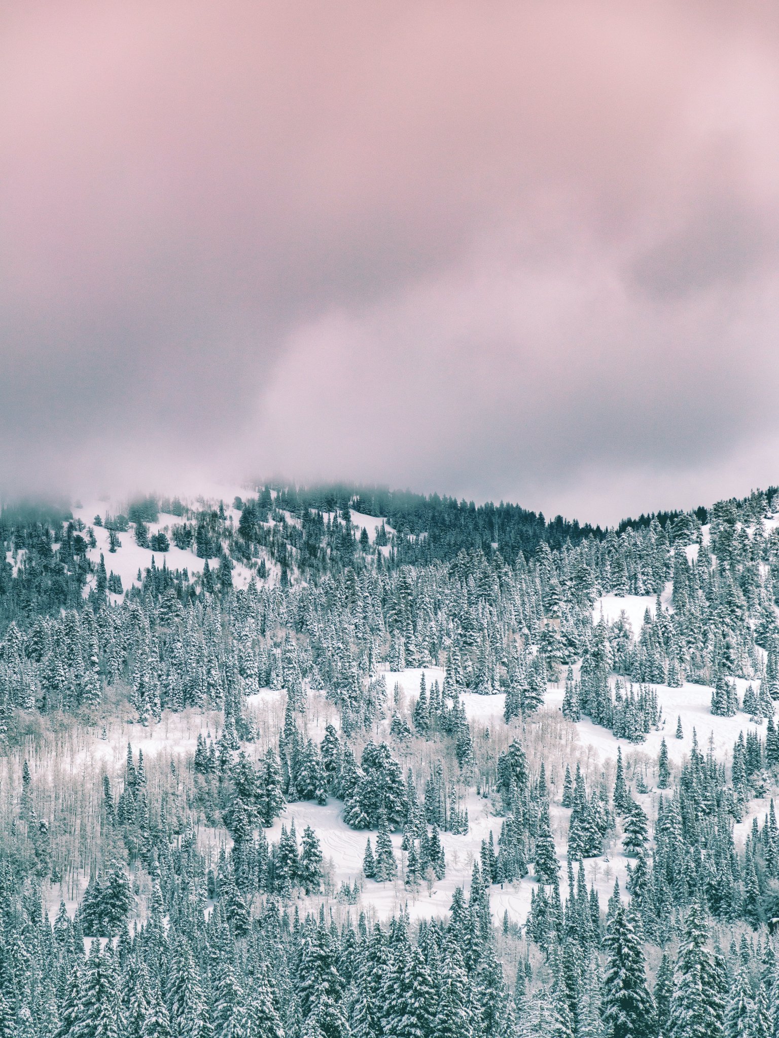 Wallpaper: clouds, winter forest - 1536x2048