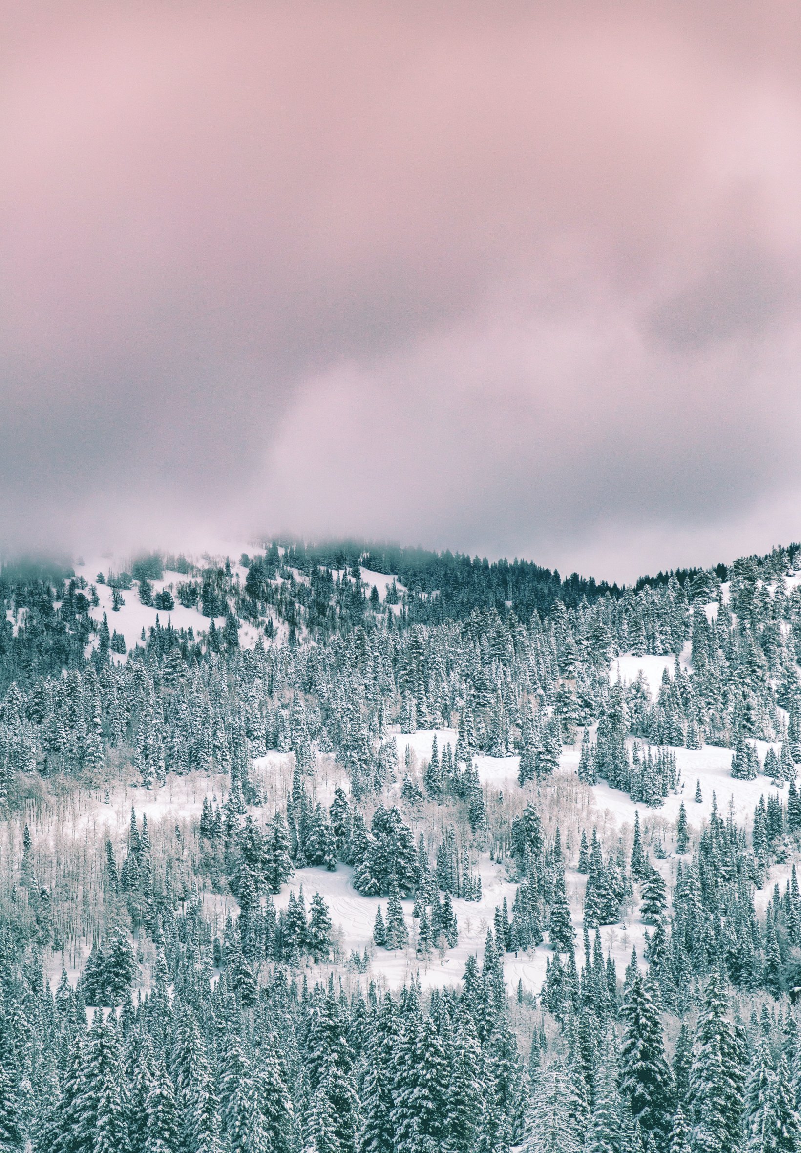 Wallpaper: clouds, winter forest - 1640x2360