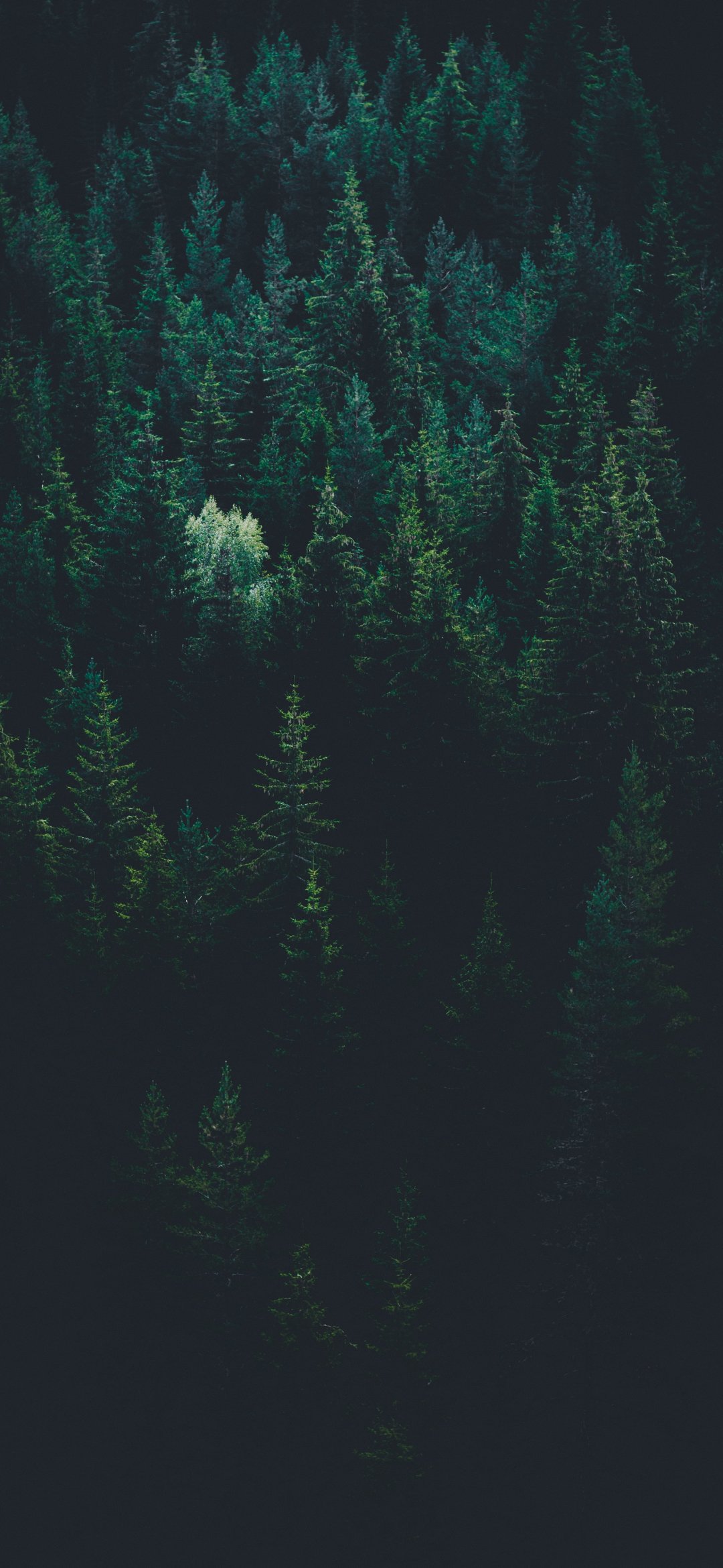 Wallpaper: top view, coniferous forest - 1080x2340