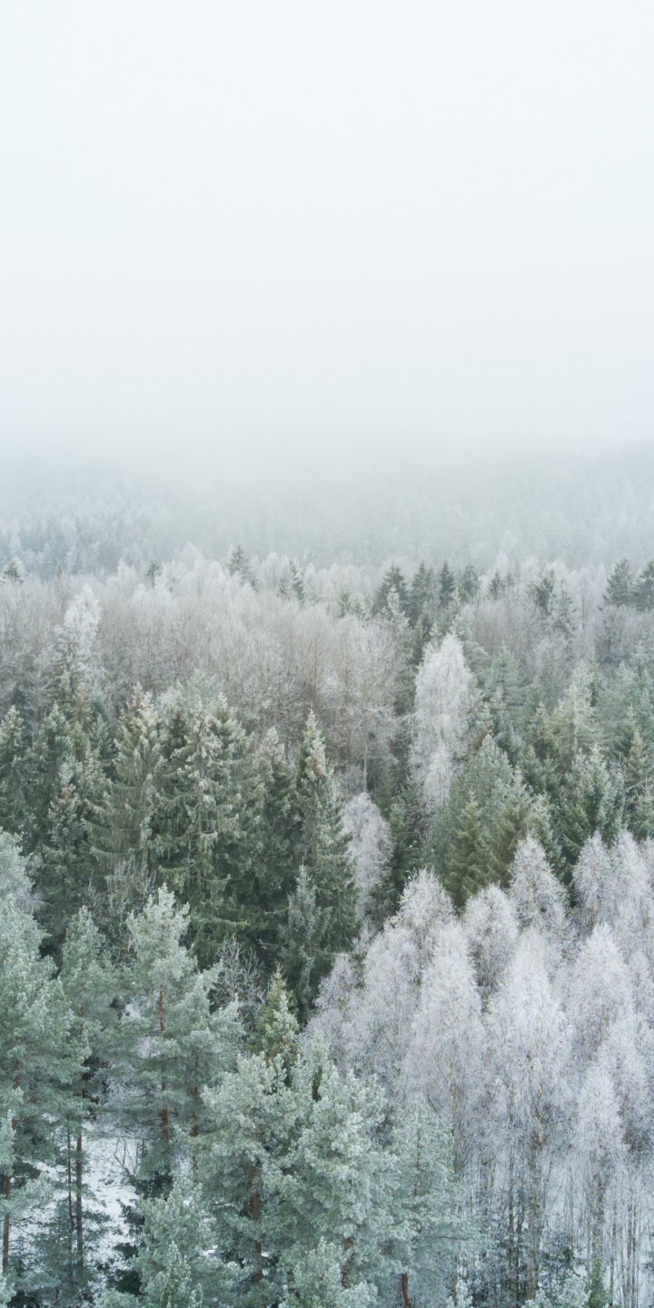 Wallpaper: winter forest, top view - 720x1440