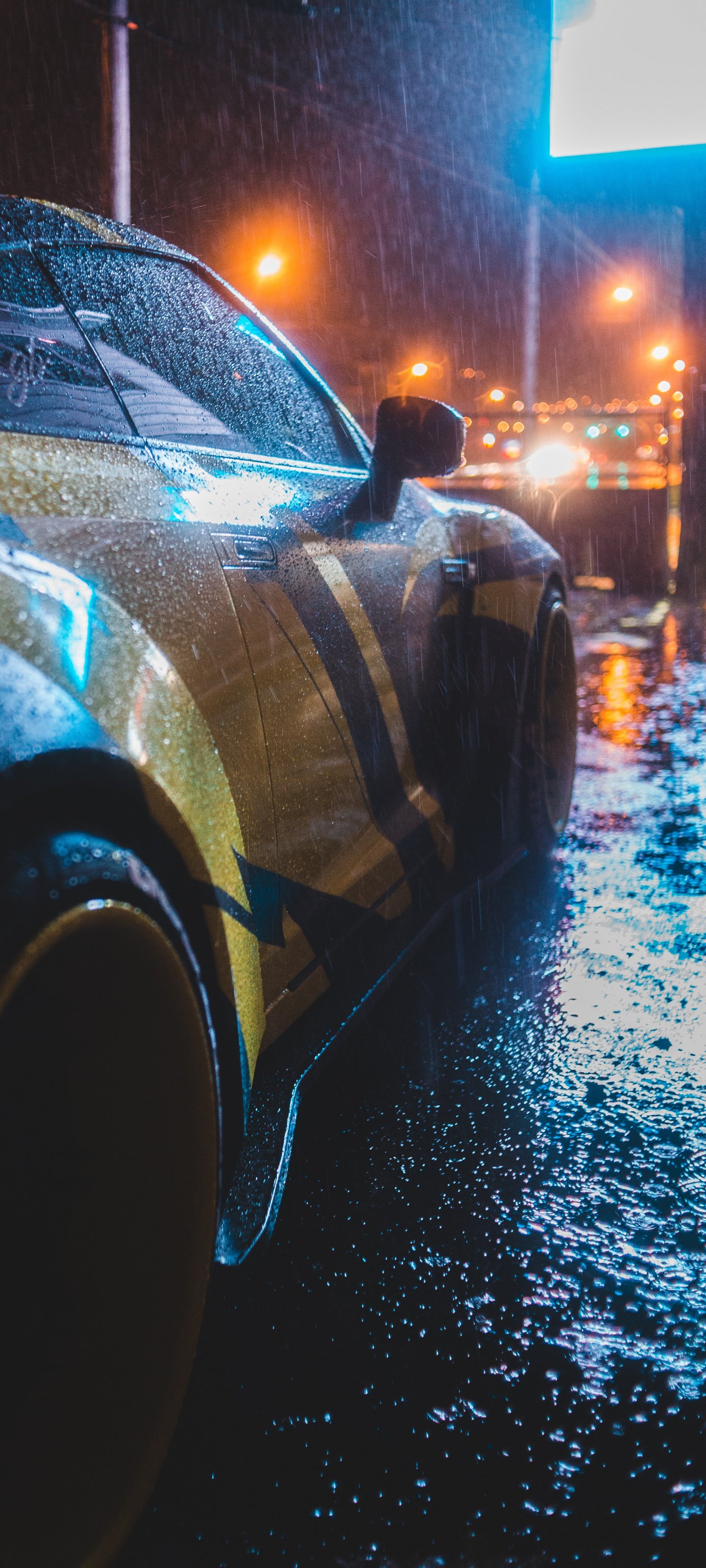 Wallpaper: sports car, rain, night - 1440x3200