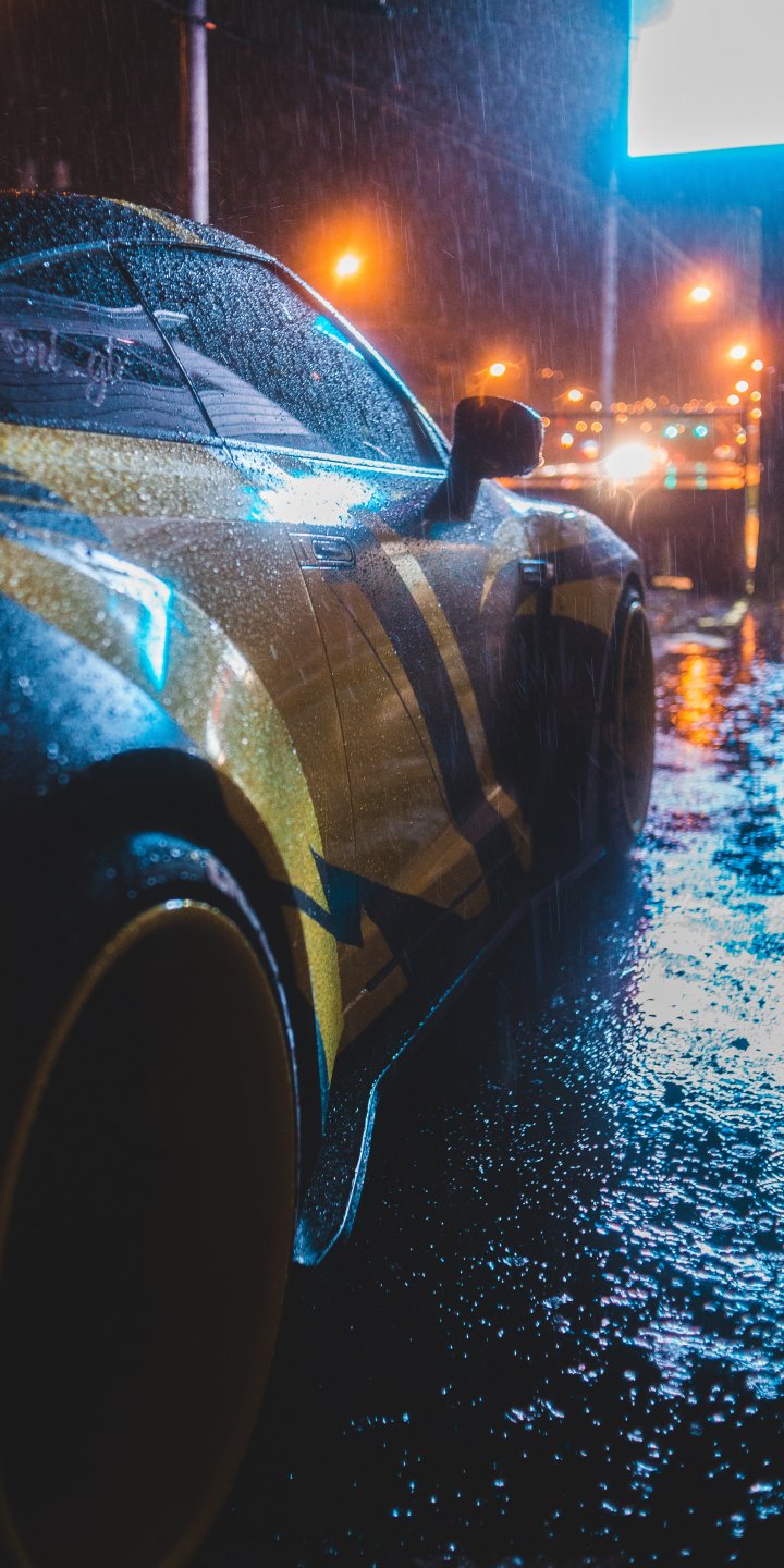 Wallpaper: sports car, rain, night - 720x1440