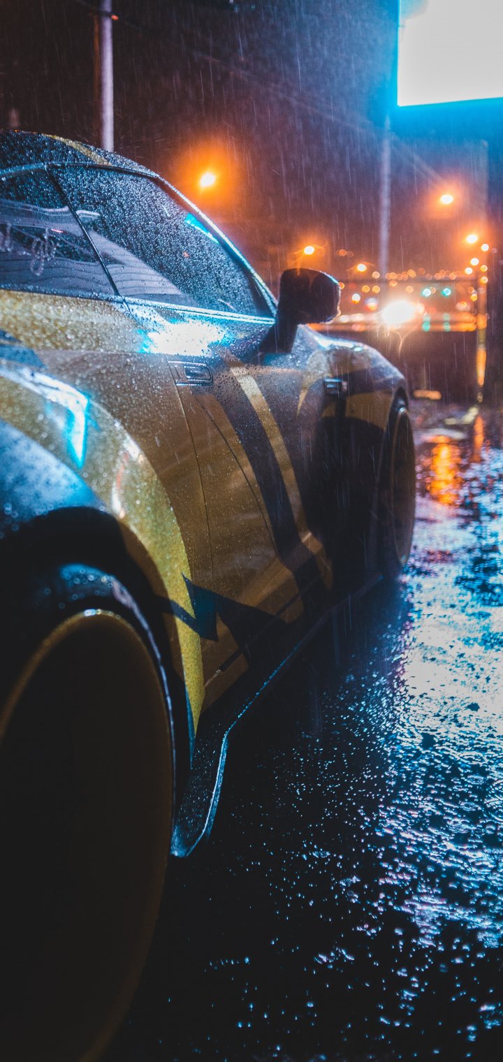 Wallpaper: sports car, rain, night - 720x1520