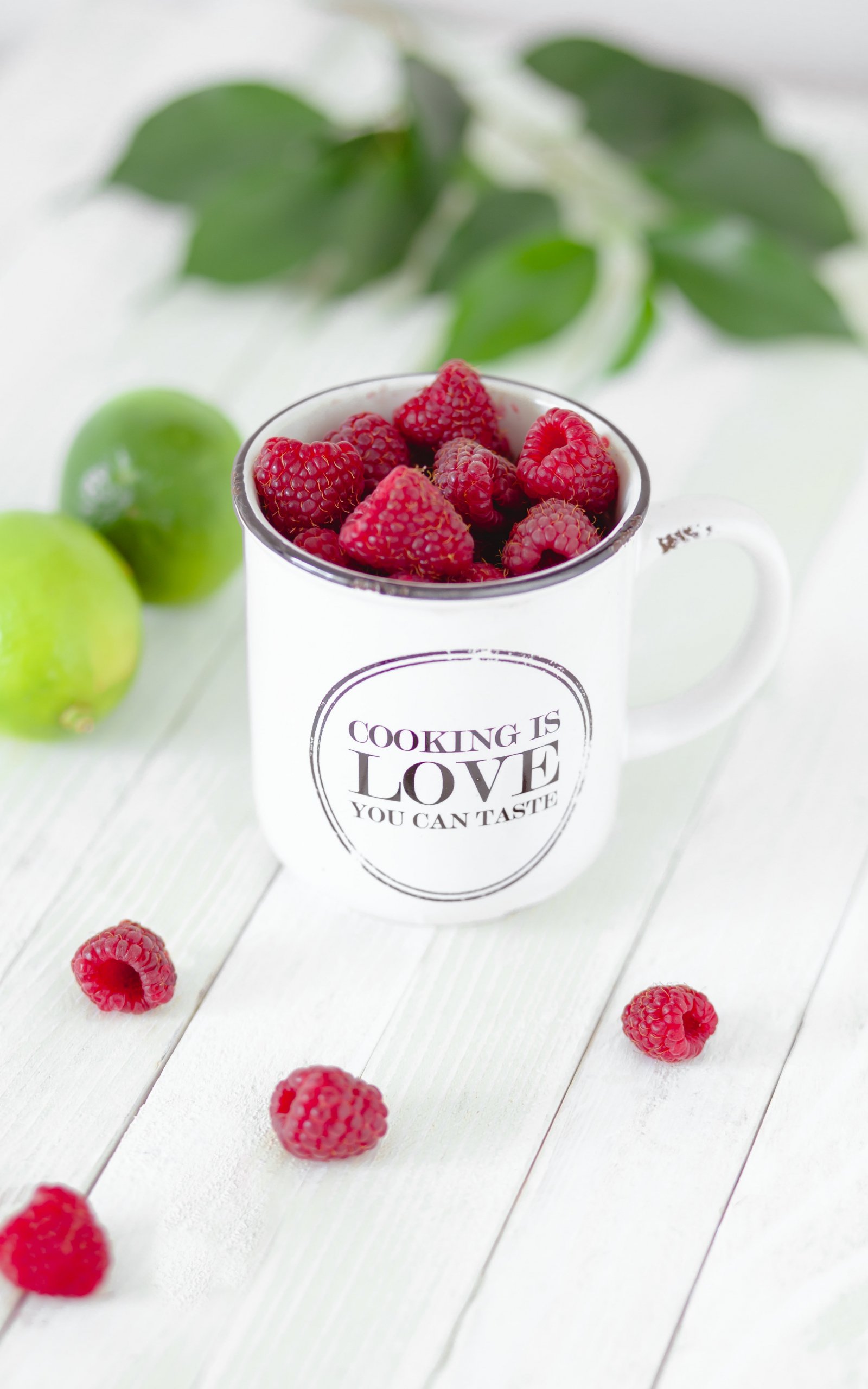 Wallpaper: raspberries, berries, mug - 1600x2560