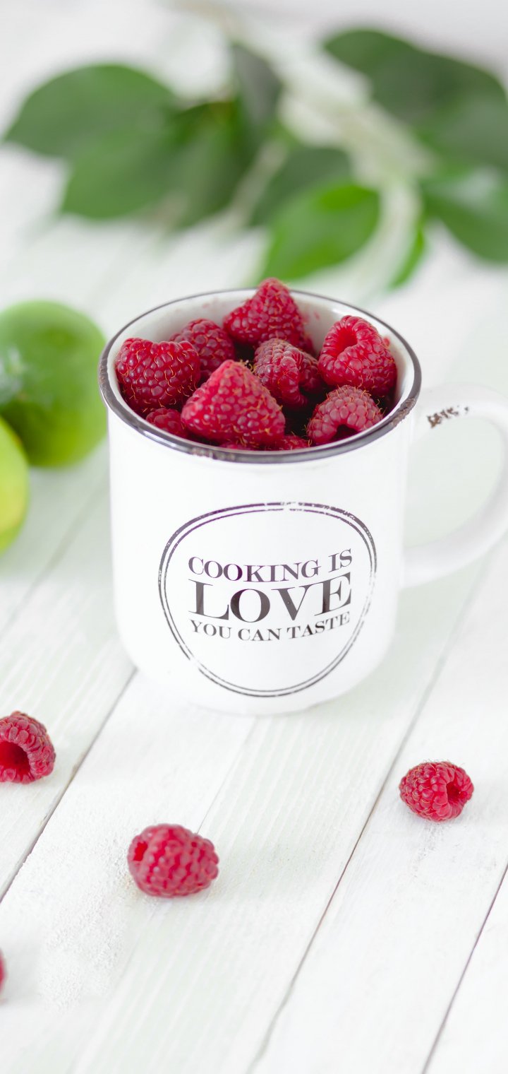 Wallpaper: raspberries, berries, mug - 720x1520