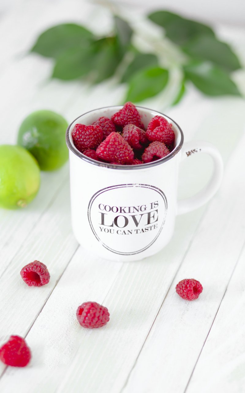 Wallpaper: raspberries, berries, mug - 800x1280