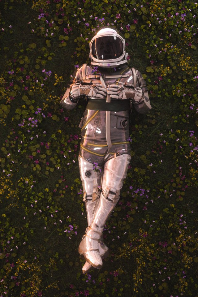 Wallpaper: astronaut, pole, flowers - 640x960