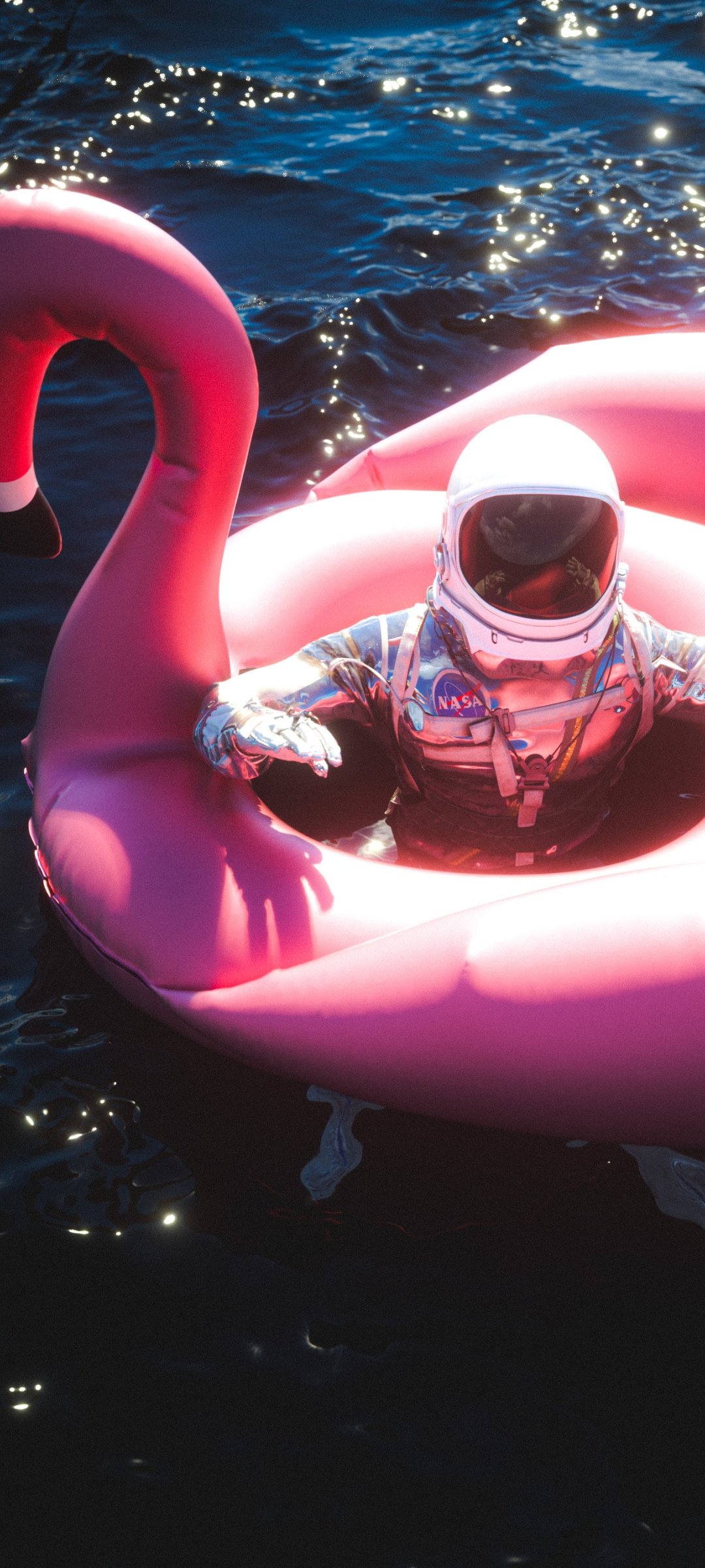 Wallpaper: astronaut, inflatable, flamingo - 1080x2400