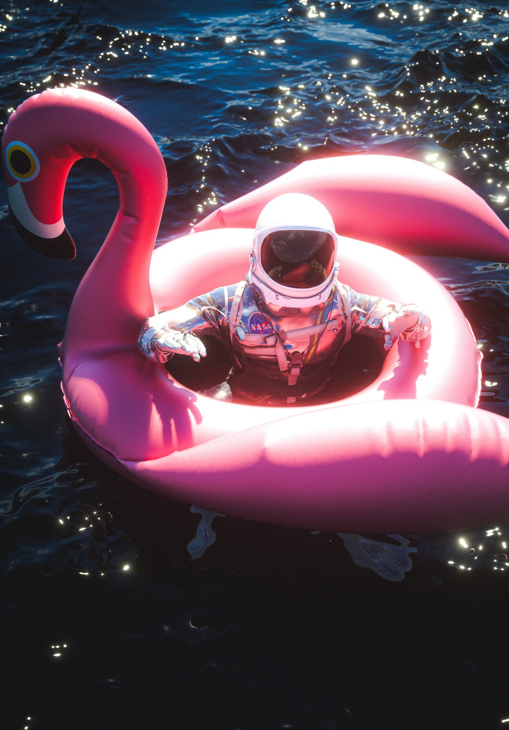 Wallpaper: astronaut, inflatable, flamingo - 1668x2388