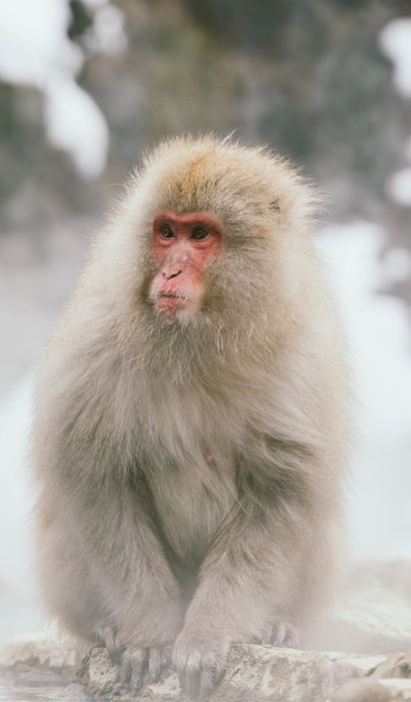 Wallpaper: monkey, water, bathing - 600x1024