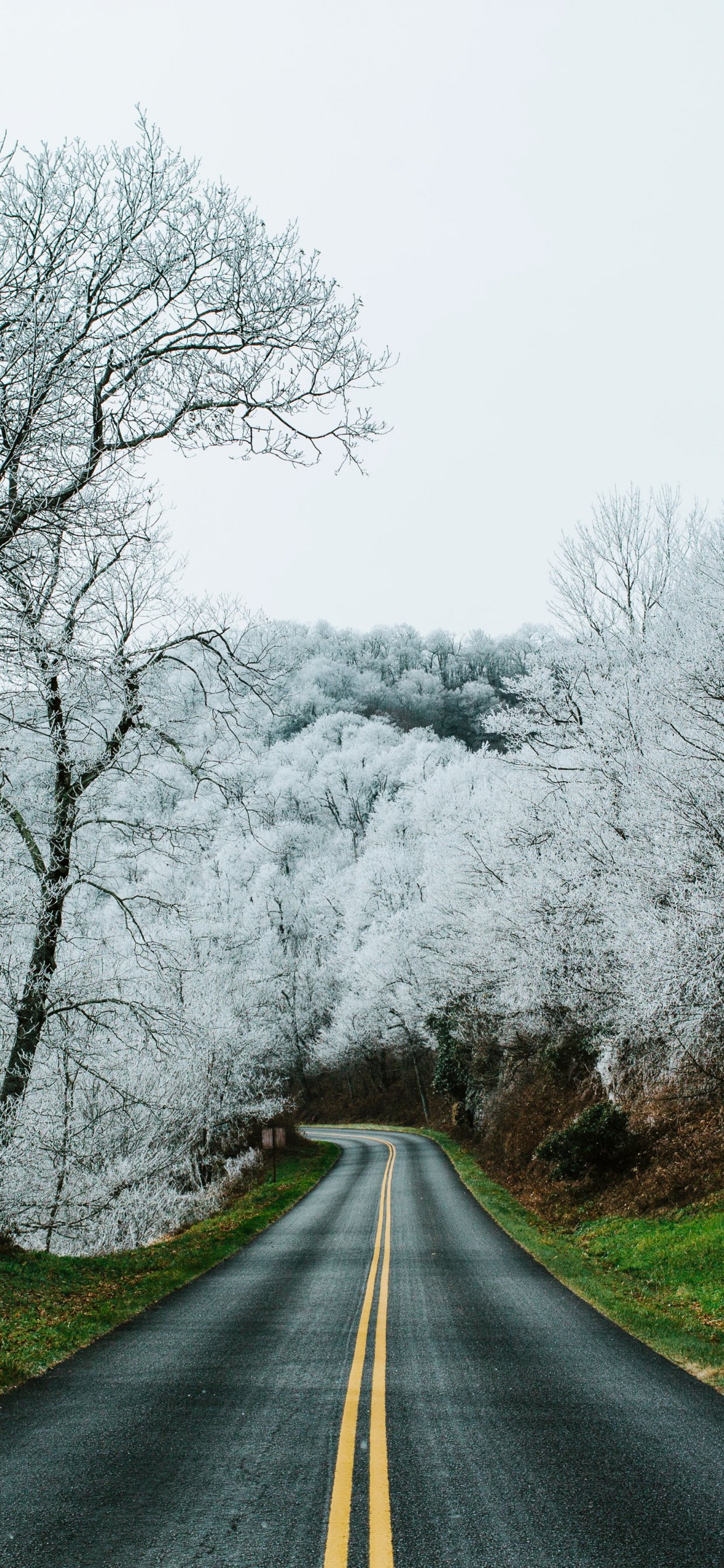 Wallpaper: road, snow forest - 1242x2688