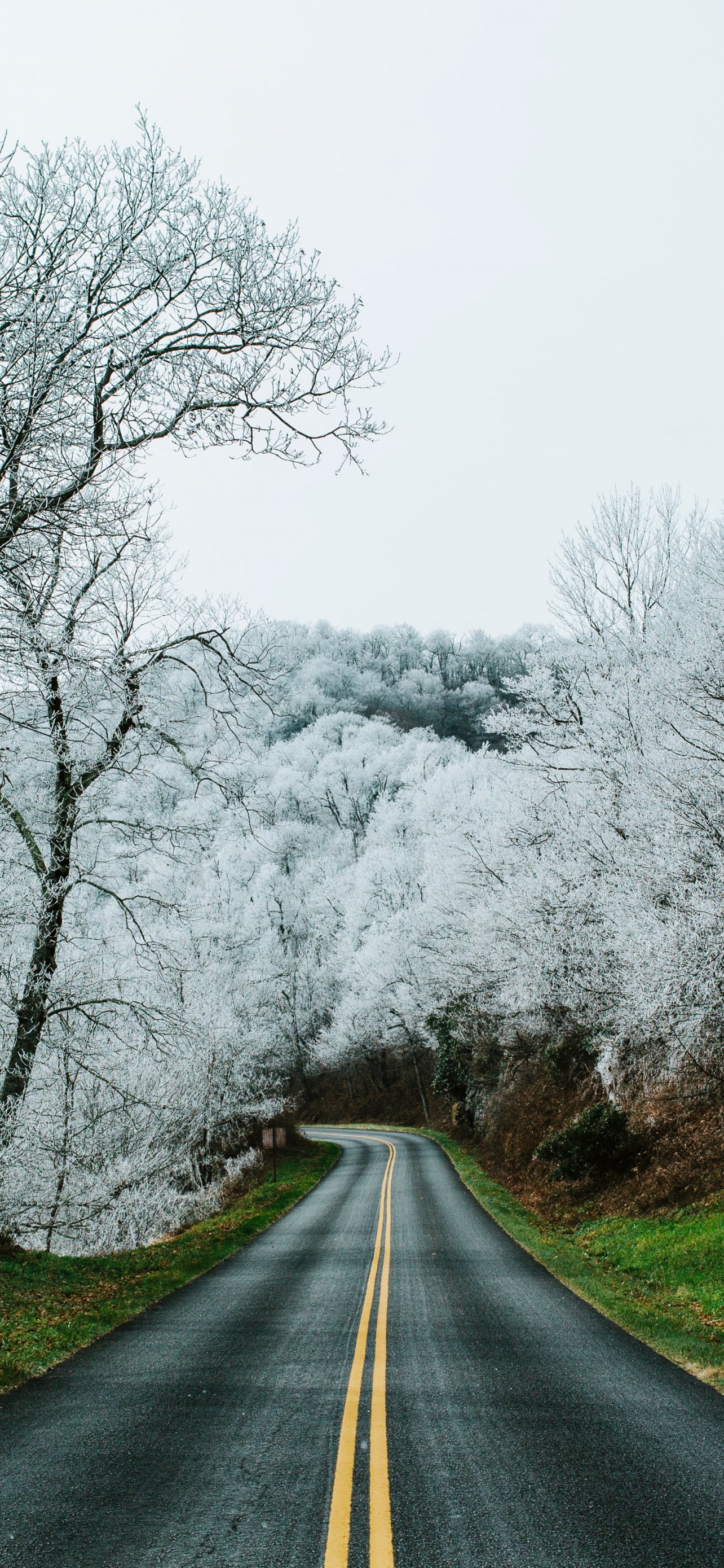 Wallpaper: road, snow forest - 1284x2778