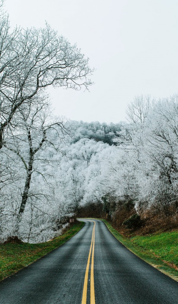 Wallpaper: road, snow forest - 600x1024