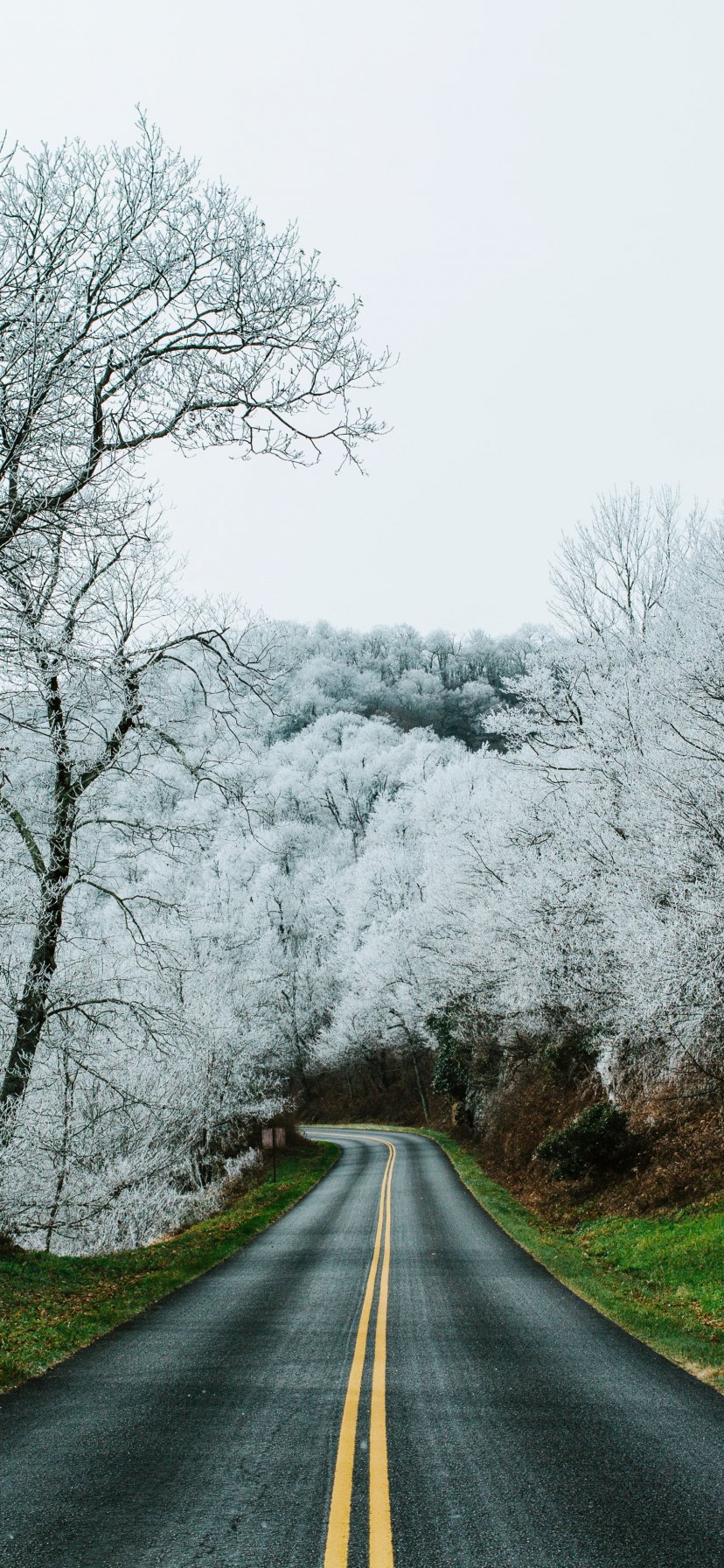 Wallpaper: road, snow forest - 828x1792