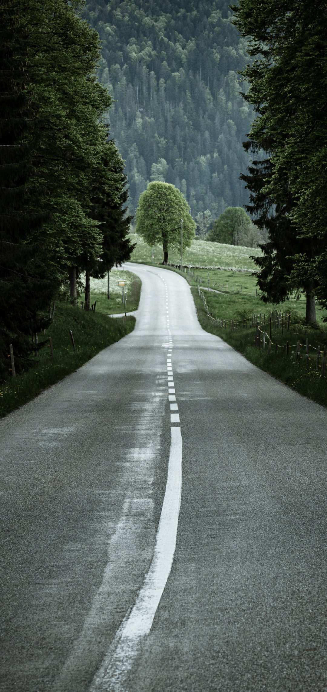 Wallpaper: road, forest, green - 1080x2280
