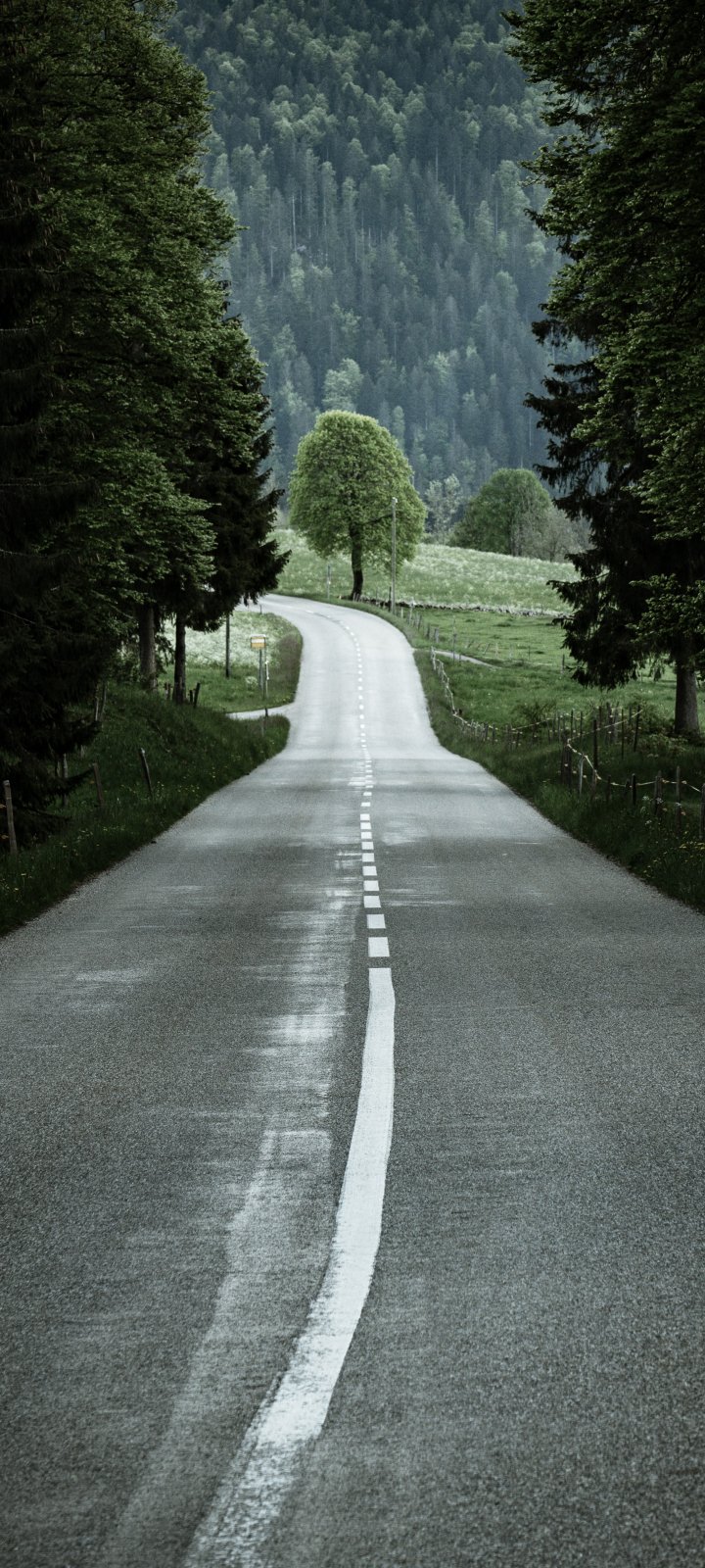 Wallpaper: road, forest, green - 720x1600