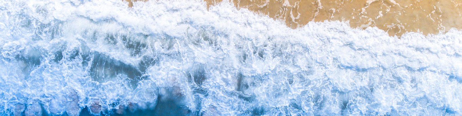 Wallpaper: sea waves, beach, top view - 1590x400