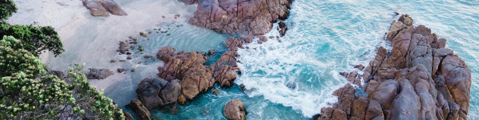 Wallpaper: ocean, rocks, sand - 1590x400
