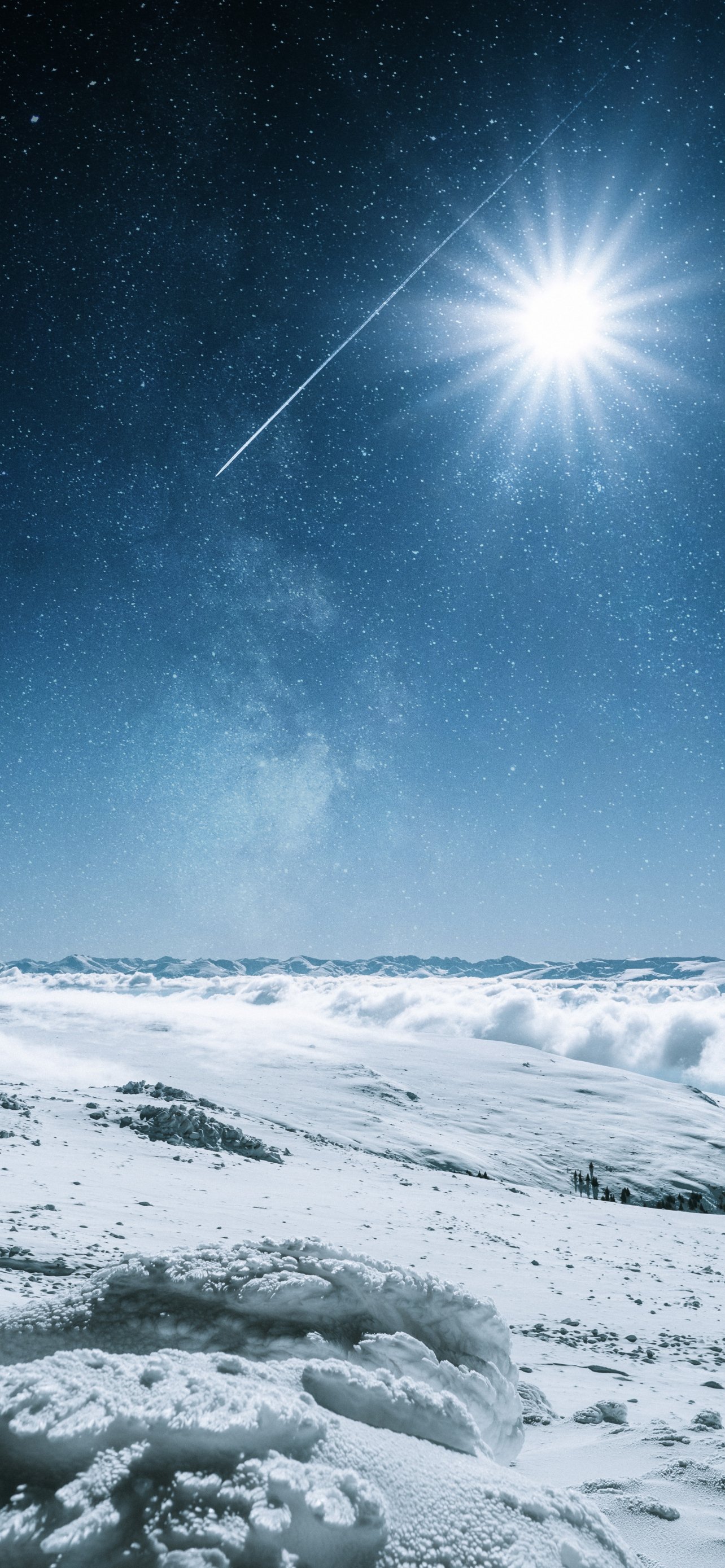 Wallpaper: snow, sun, stars, winter - 1284x2778