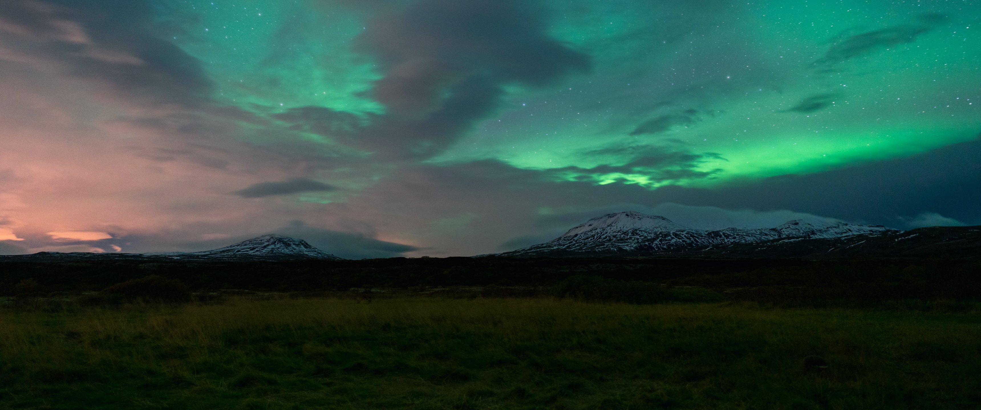 Wallpaper: mountains, sky, shine - 3440x1440