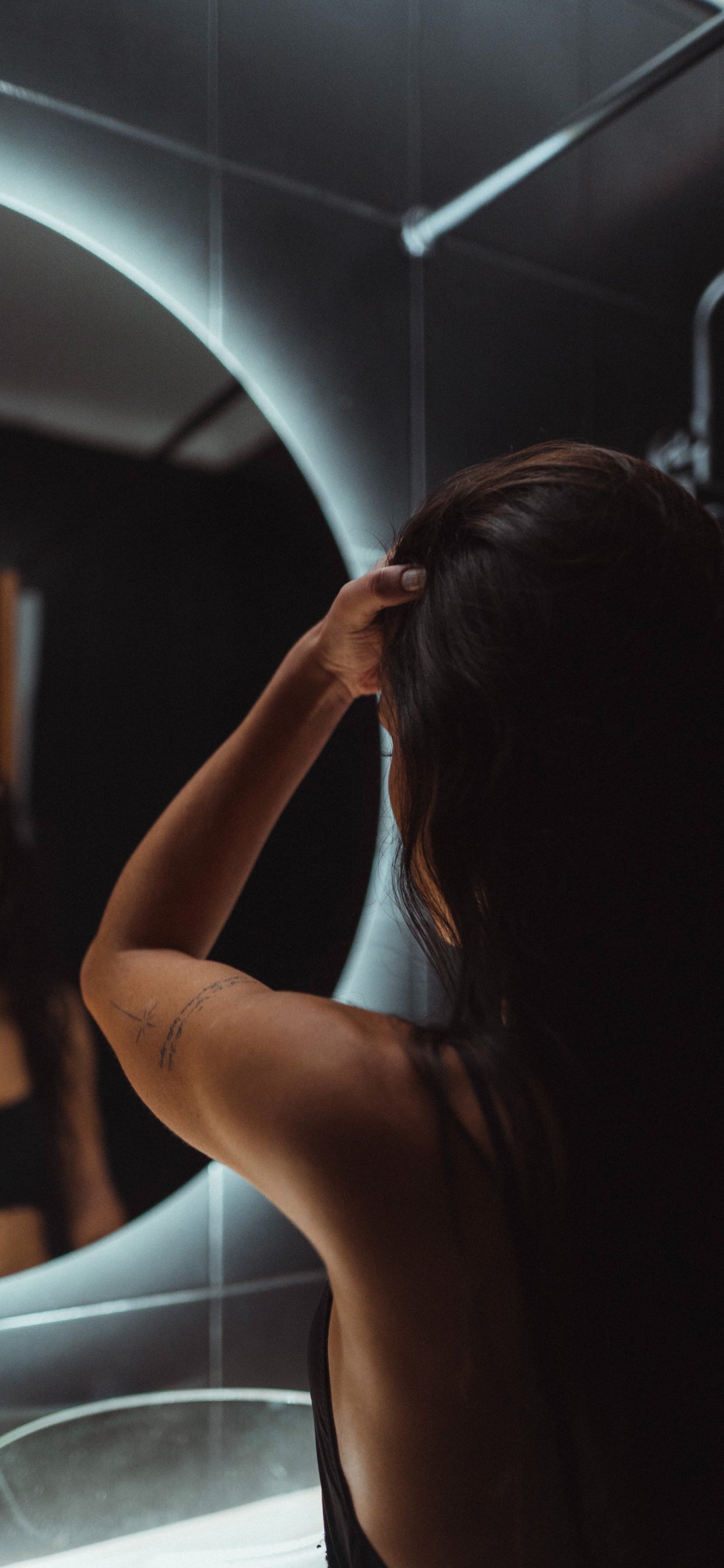 Wallpaper: girl, reflection, tattoo - 1242x2688