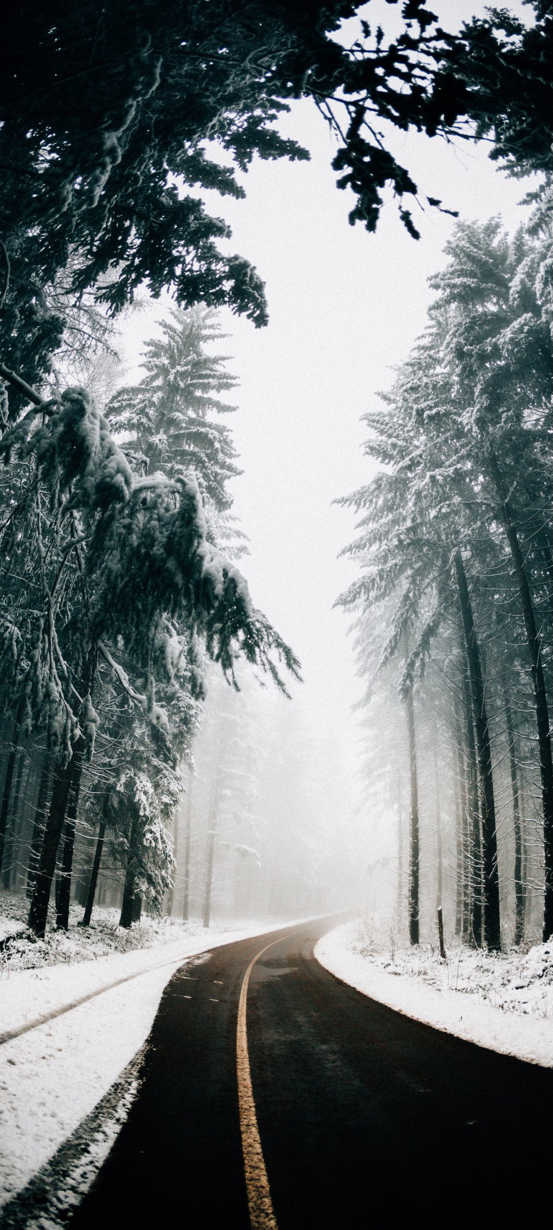 Wallpaper: road, winter, snow - 1080x2400