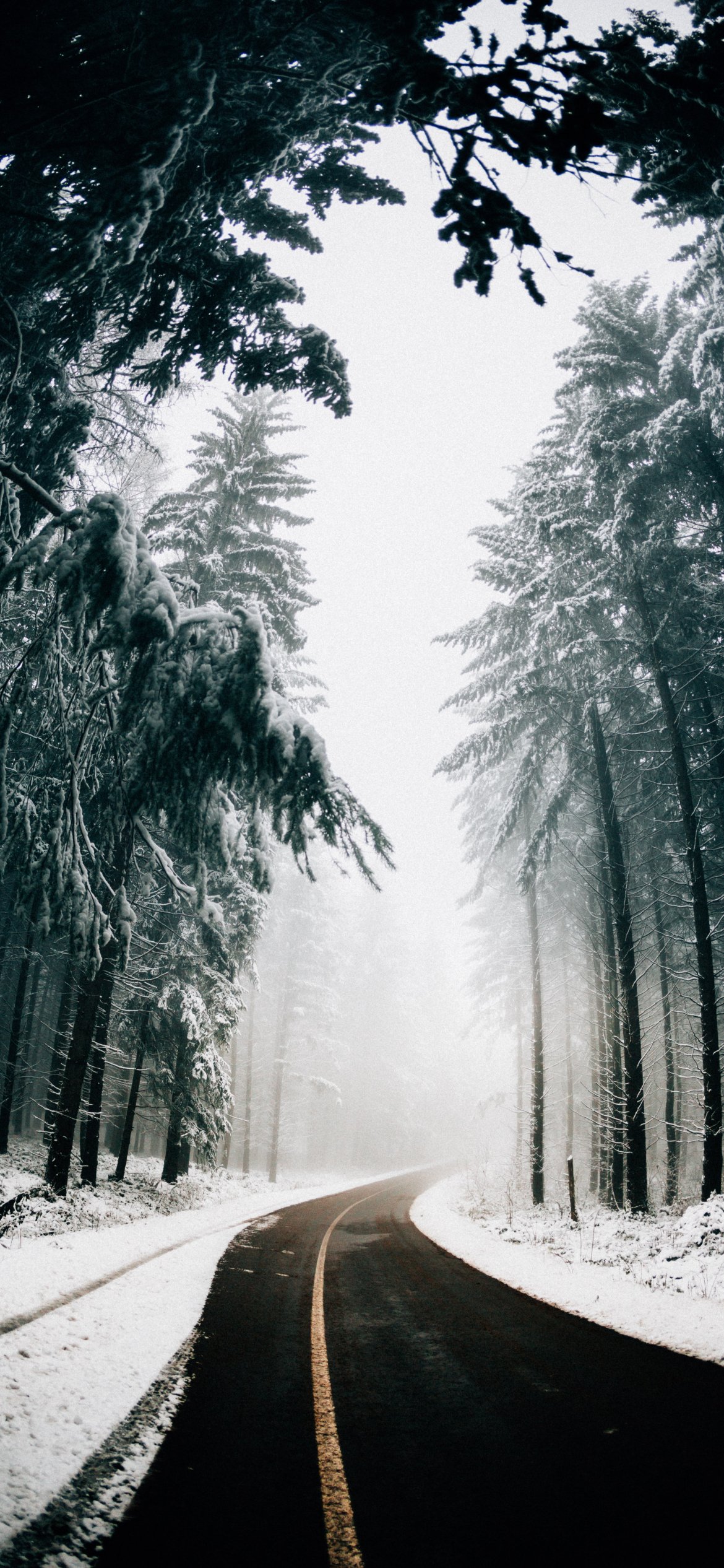Wallpaper: road, winter, snow - 1170x2532