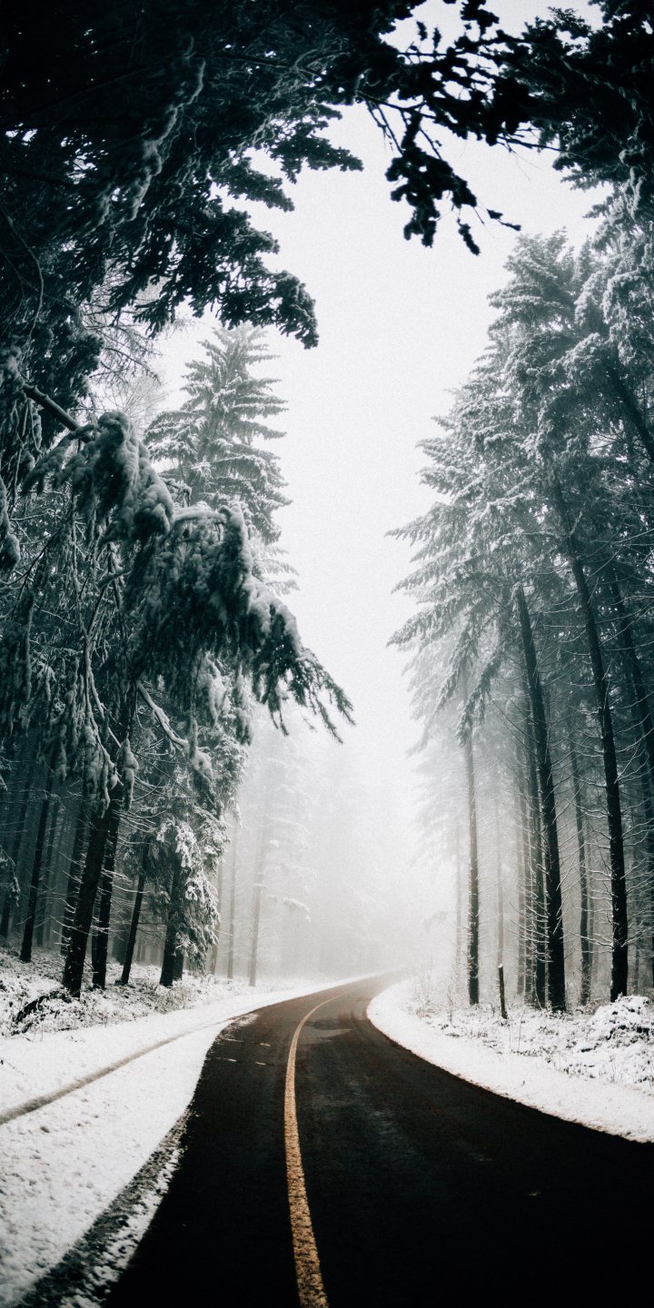 Wallpaper: road, winter, snow - 720x1440