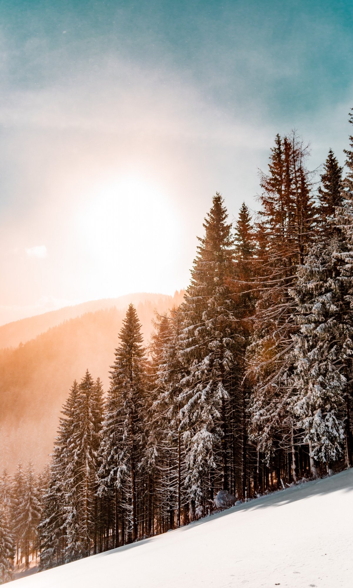 Wallpaper: snow forest, dawn, winter - 1200x2000