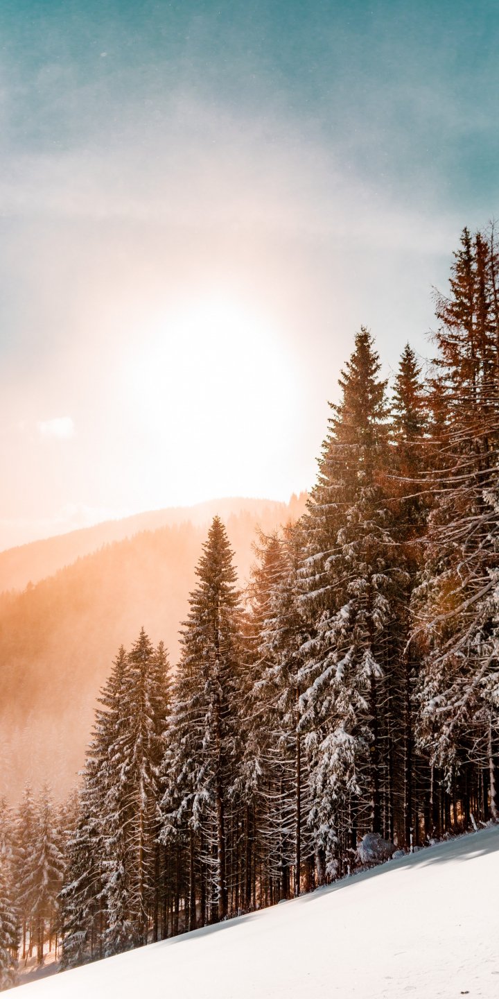 Wallpaper: snow forest, dawn, winter - 720x1440