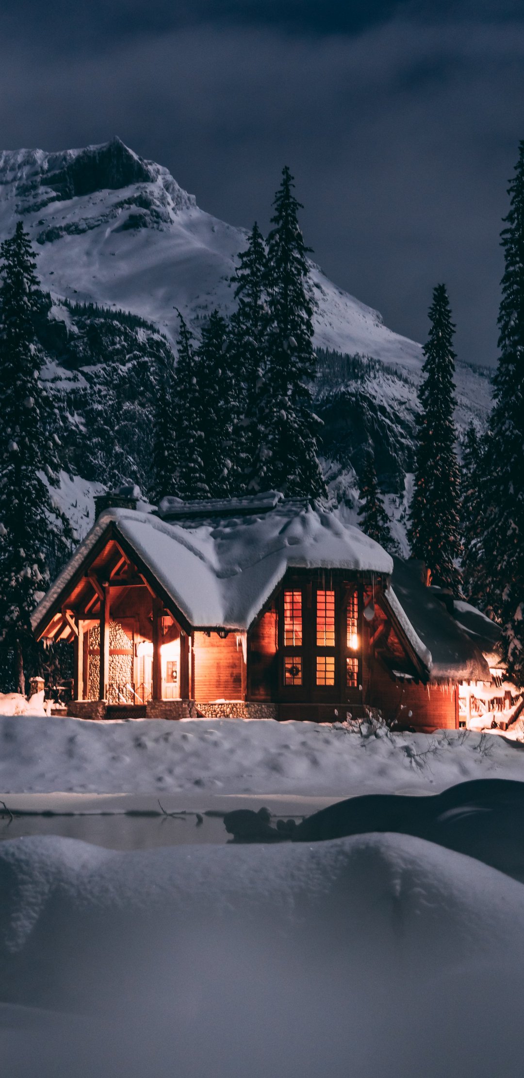 Wallpaper: house in the woods, winter, night - 1080x2220