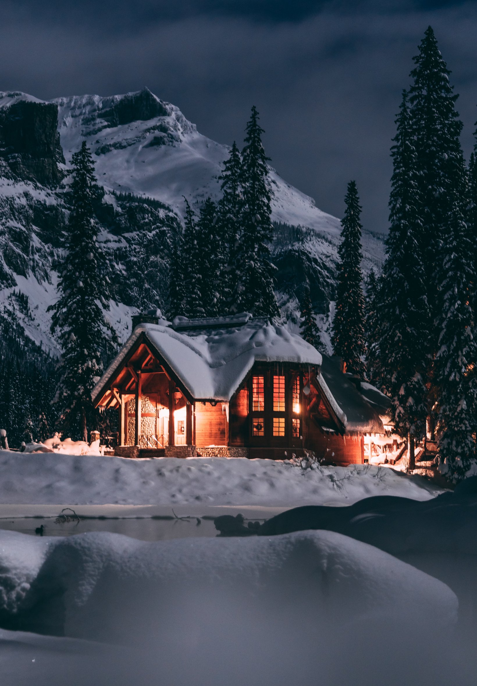 Wallpaper: house in the woods, winter, night - 1640x2360