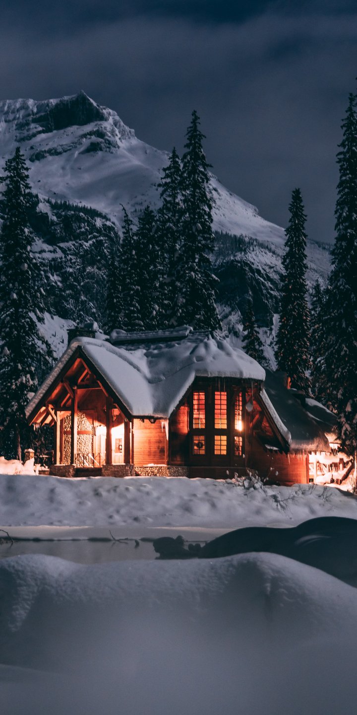 Wallpaper: house in the woods, winter, night - 720x1440