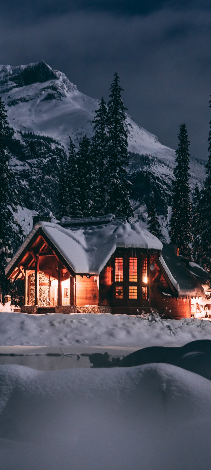 Wallpaper: house in the woods, winter, night - 720x1600