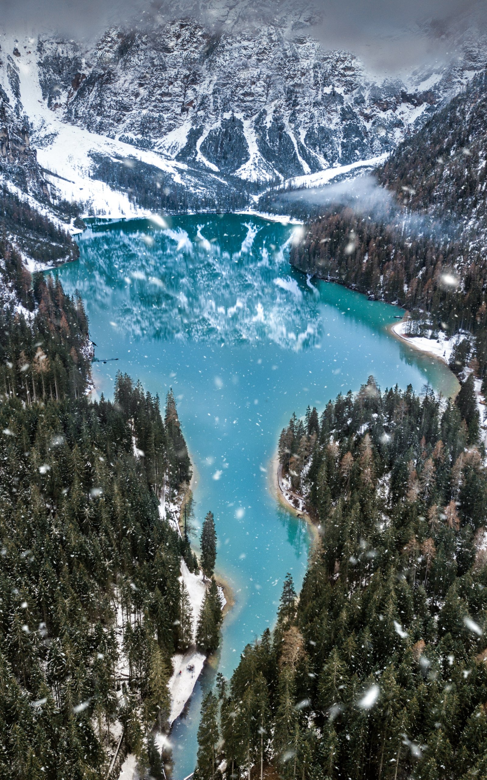 Wallpaper: mountains, forest, snowfall - 1600x2560