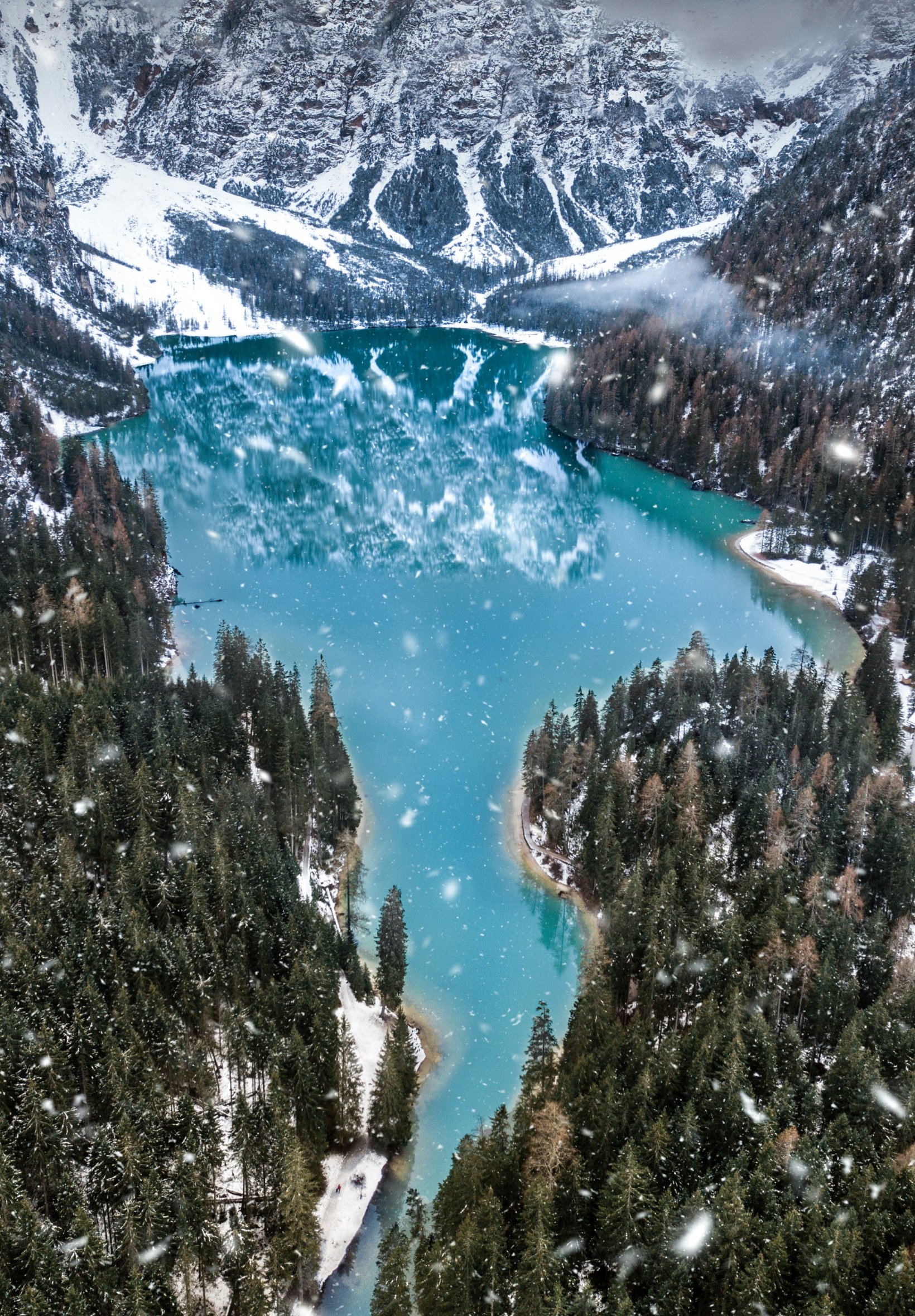 Wallpaper: mountains, forest, snowfall - 1640x2360