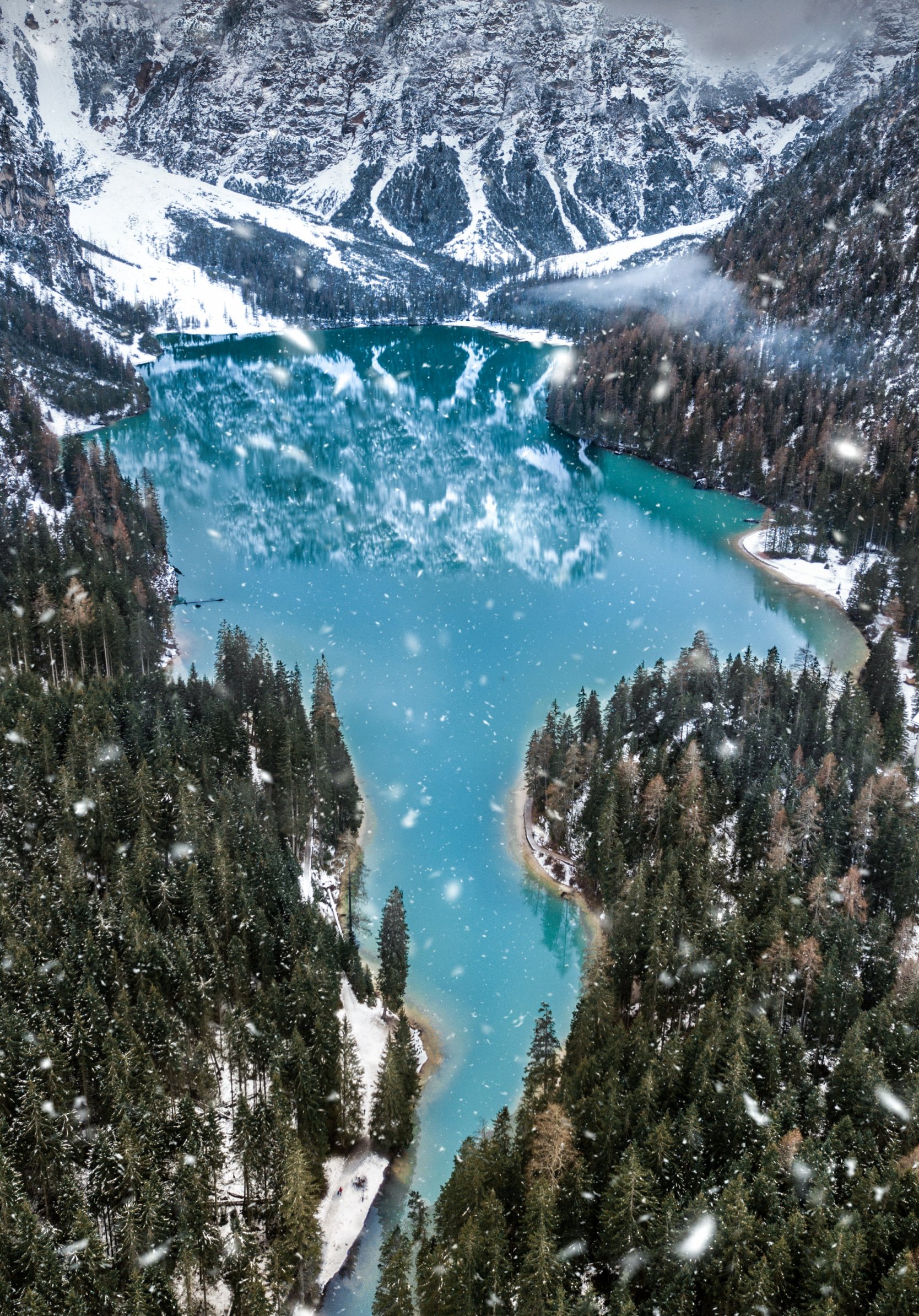 Wallpaper: mountains, forest, snowfall - 1668x2388