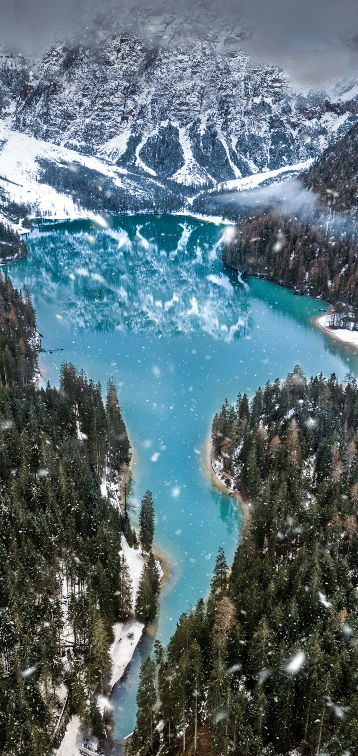 Wallpaper: mountains, forest, snowfall - 720x1520