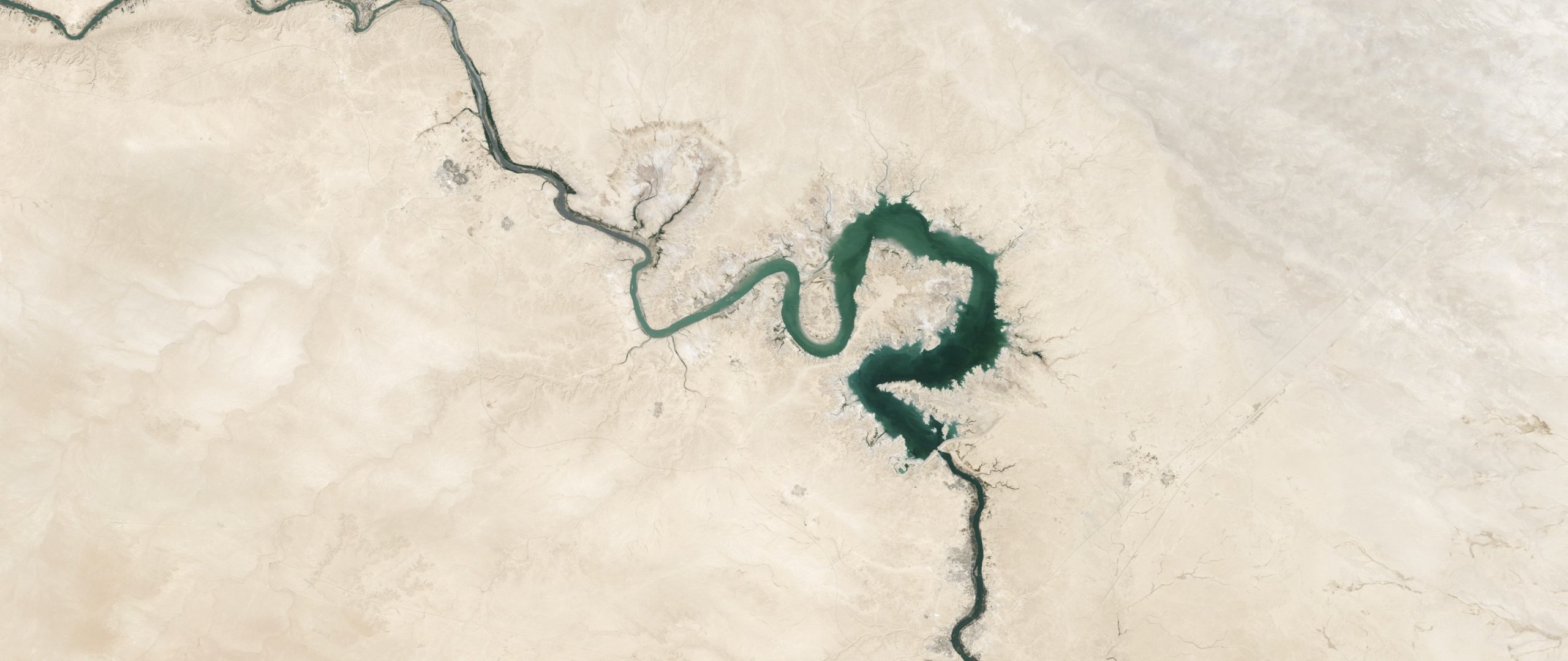 Wallpaper: top view, river, Baghdad, Iraq - 2560x1080