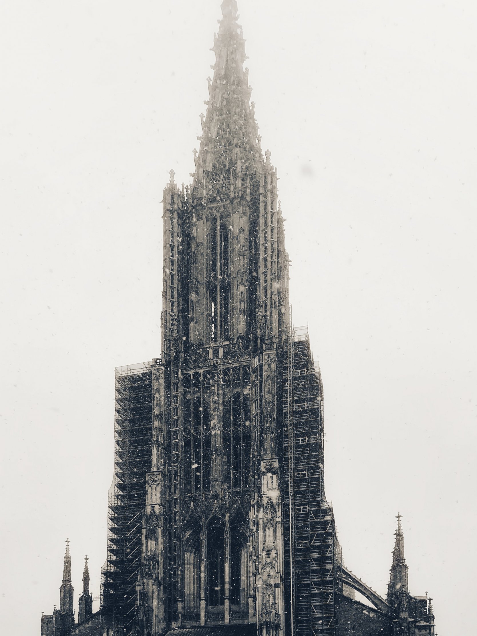 Wallpaper: building, gray, snowfall - 1668x2224