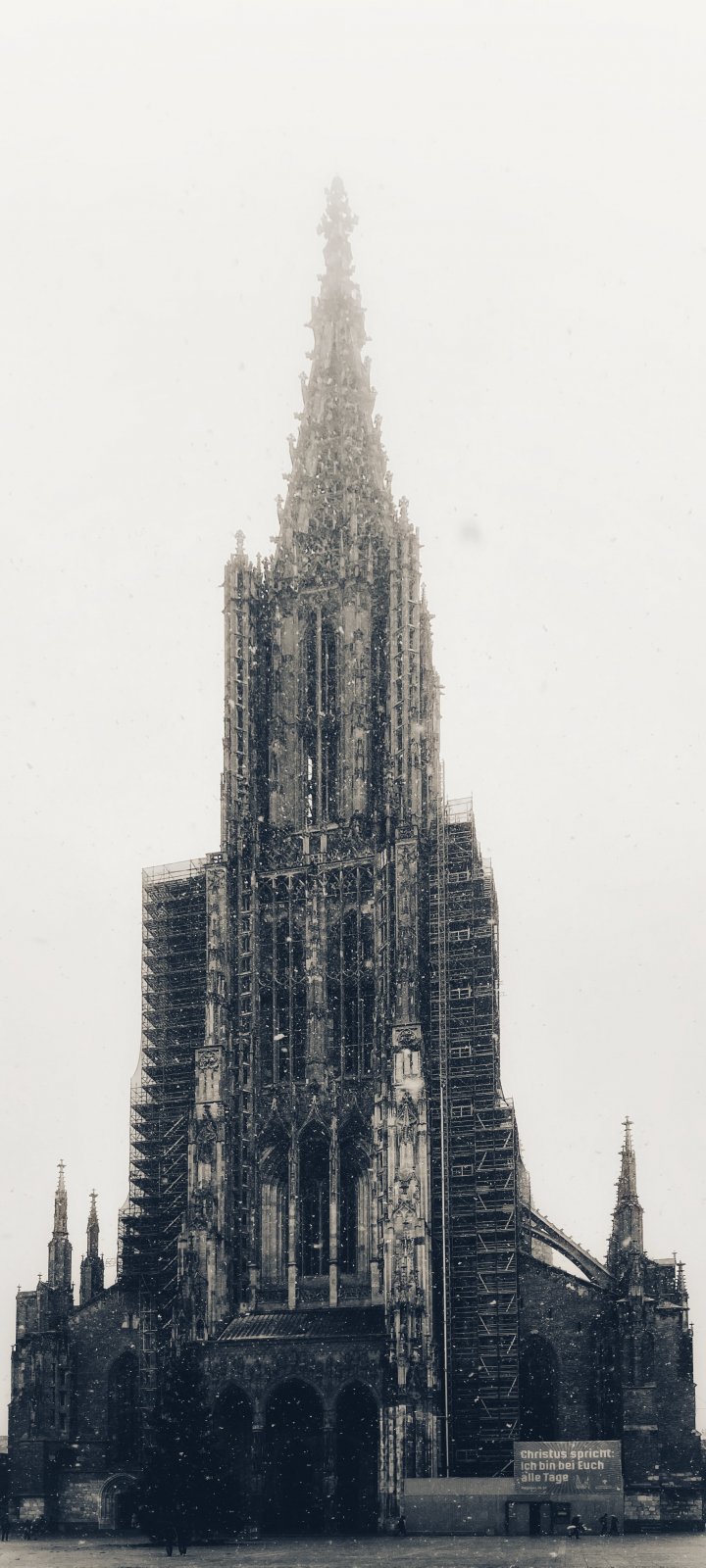 Wallpaper: building, gray, snowfall - 720x1600