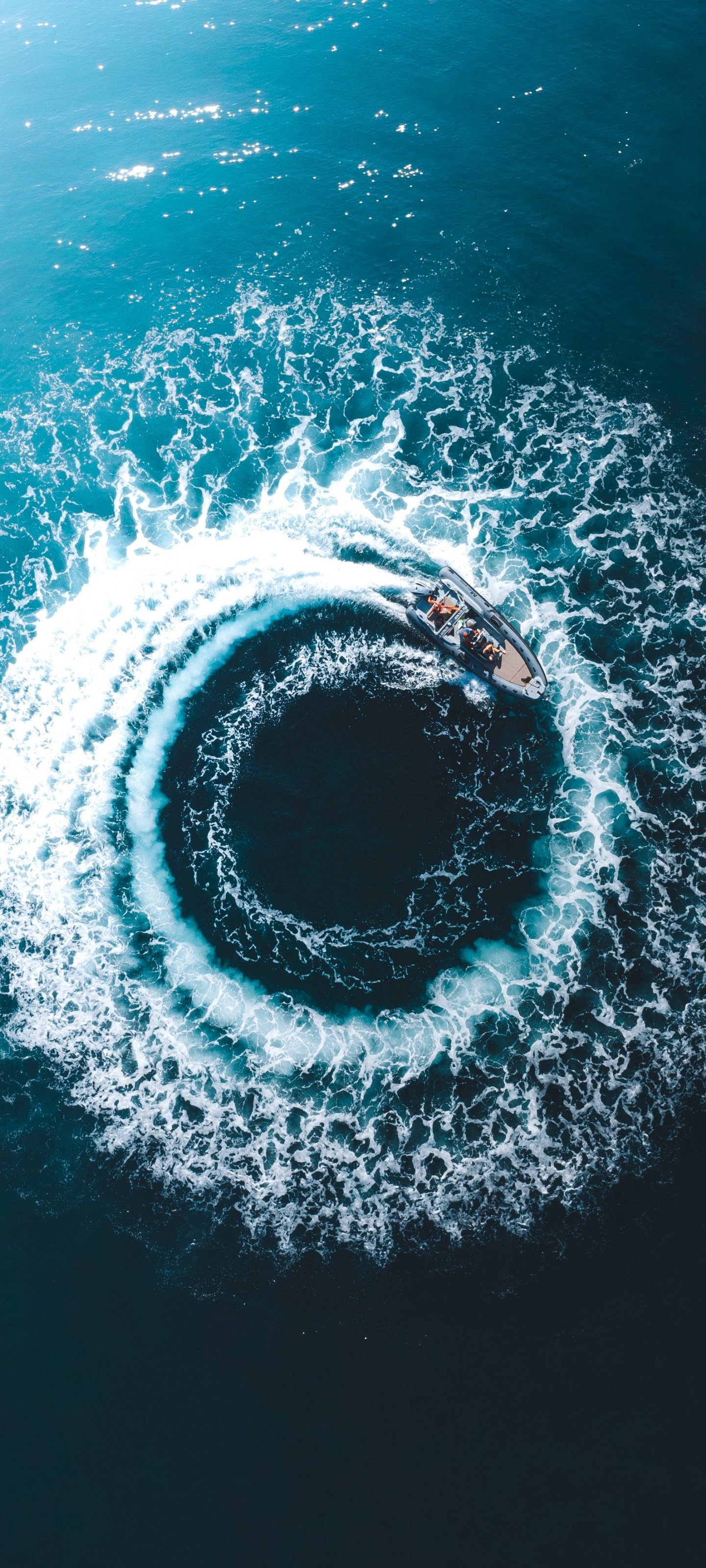 Wallpaper: sea, circle, waves - 1440x3200