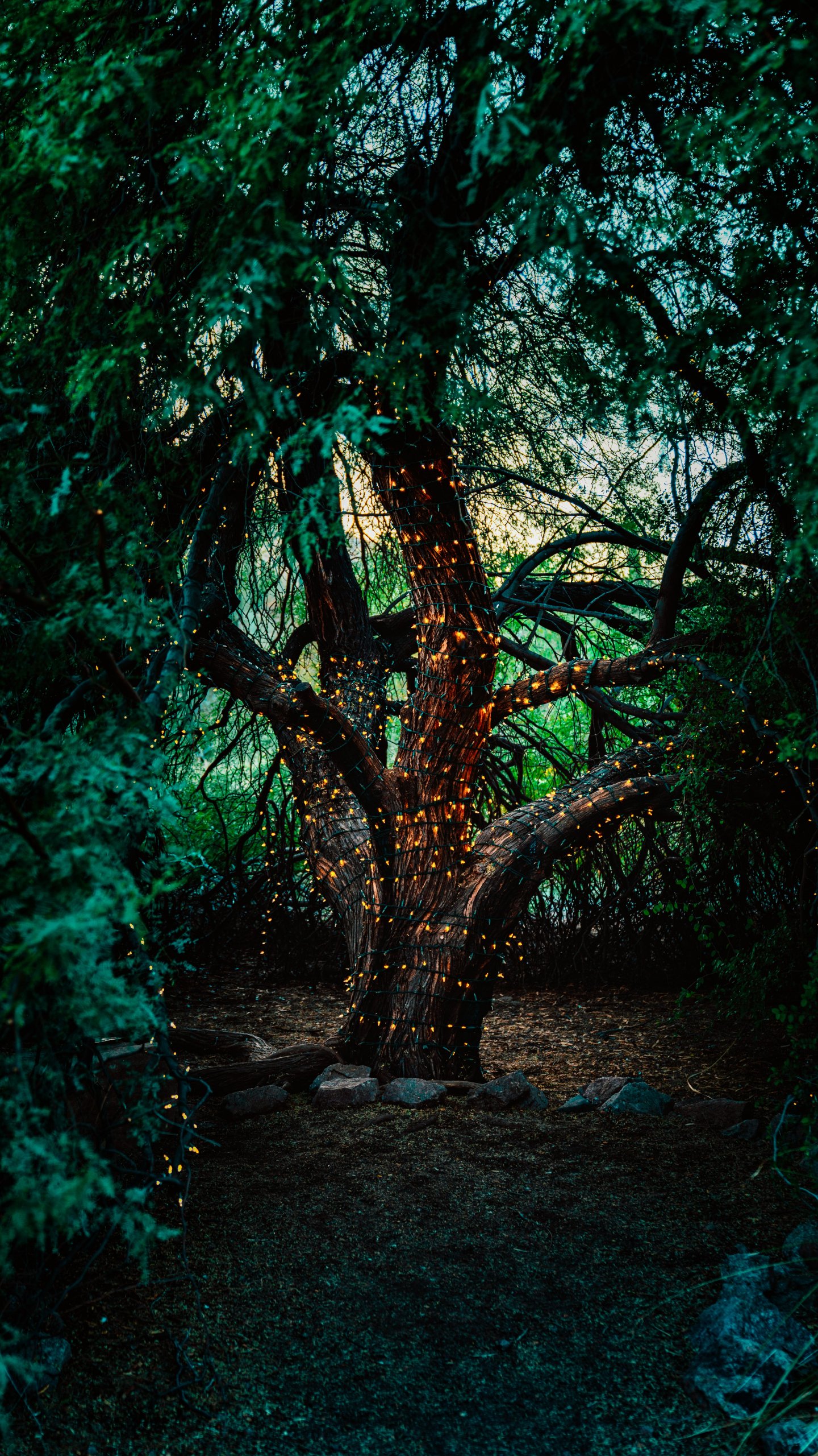 Wallpaper: tree, lights - 1440x2560