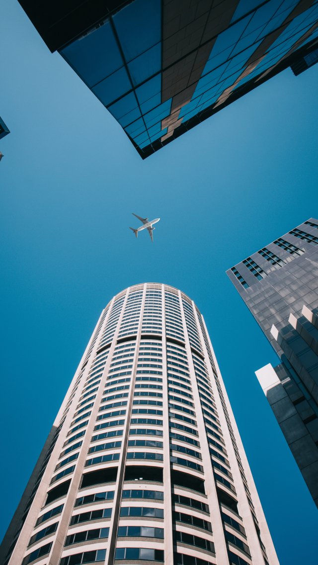 Wallpaper: plane, buildings, height - 640x1136